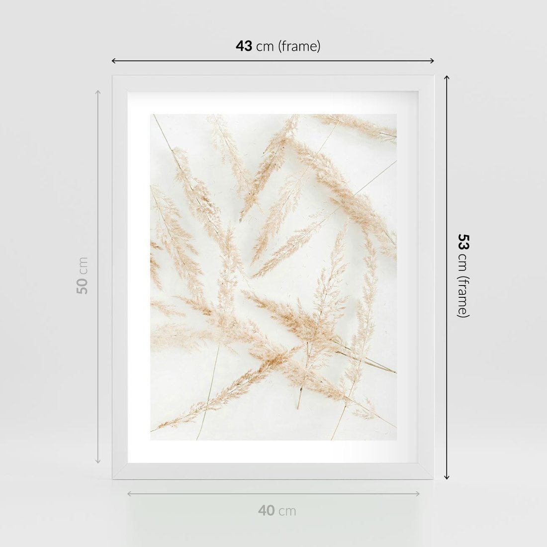 Plakat w ramie 40x50 - Pampas w Stylu Boho: Kompozycja Natury - suche trawy, pampas - rama biała