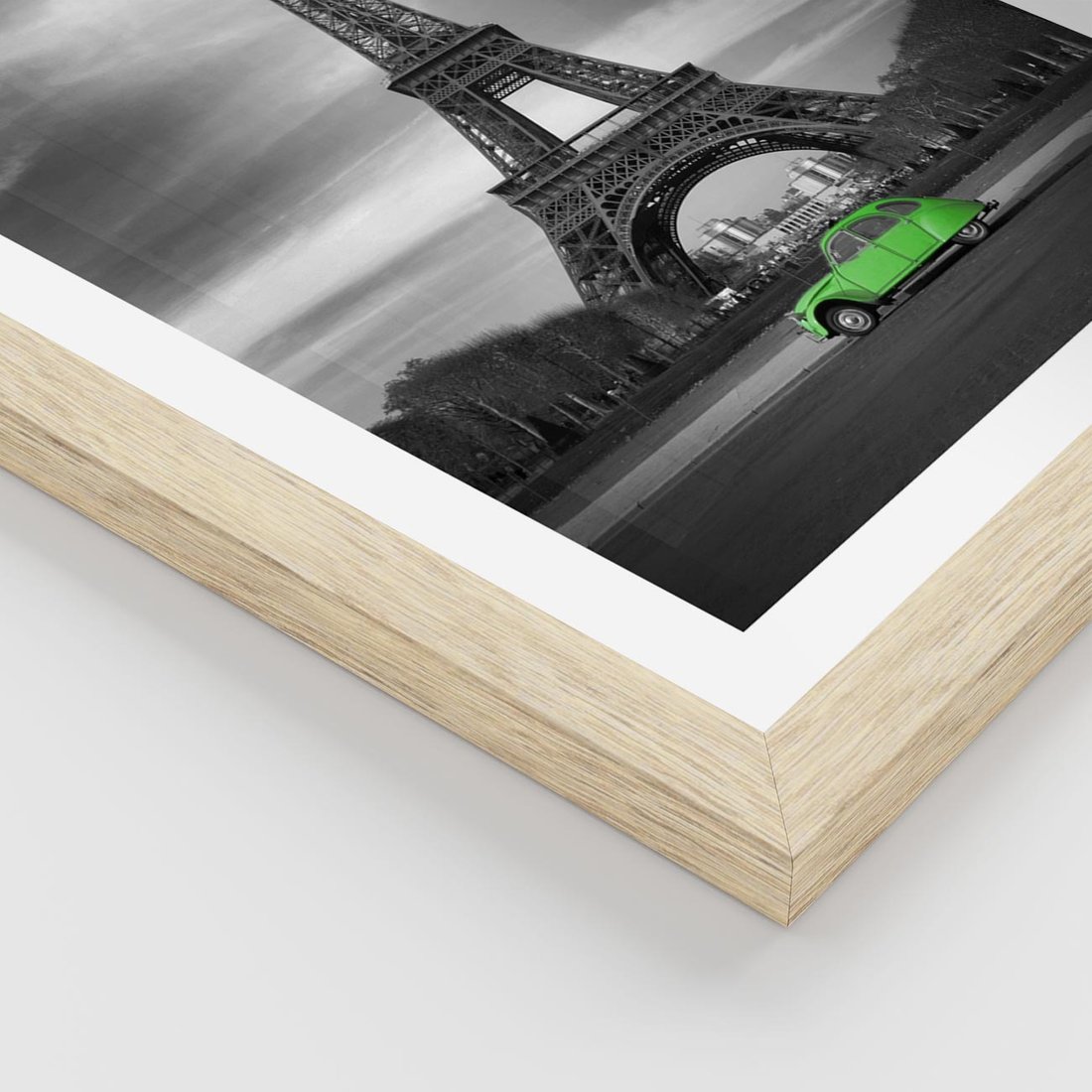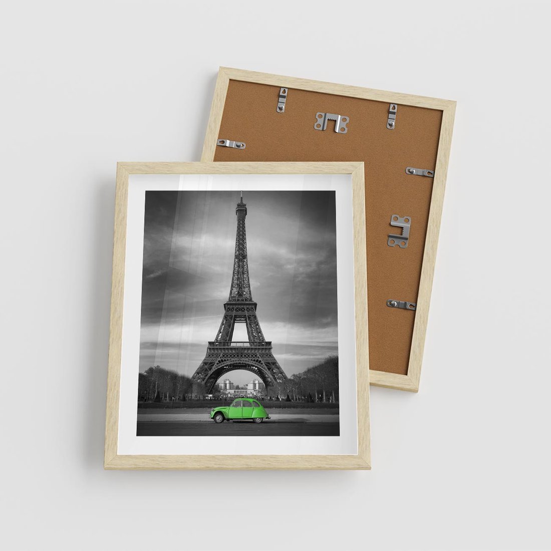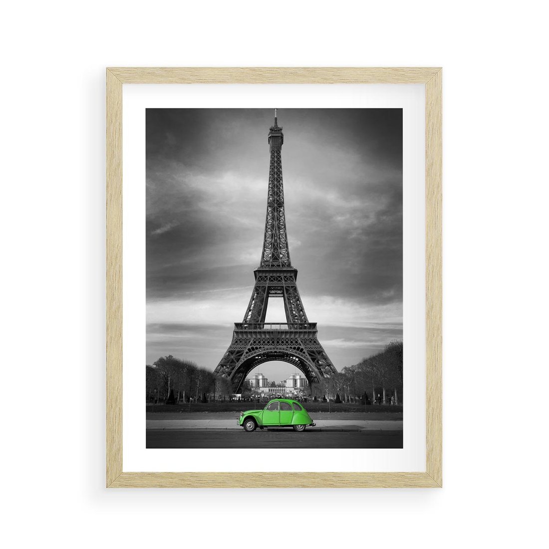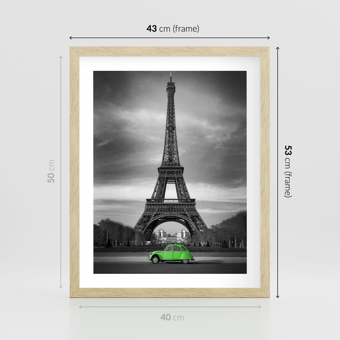 Plakat w ramie 40x50 - Paryskie Romantyczne Spotkanie - Eiffla, samochód - rama drewno