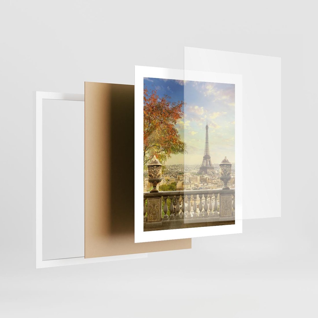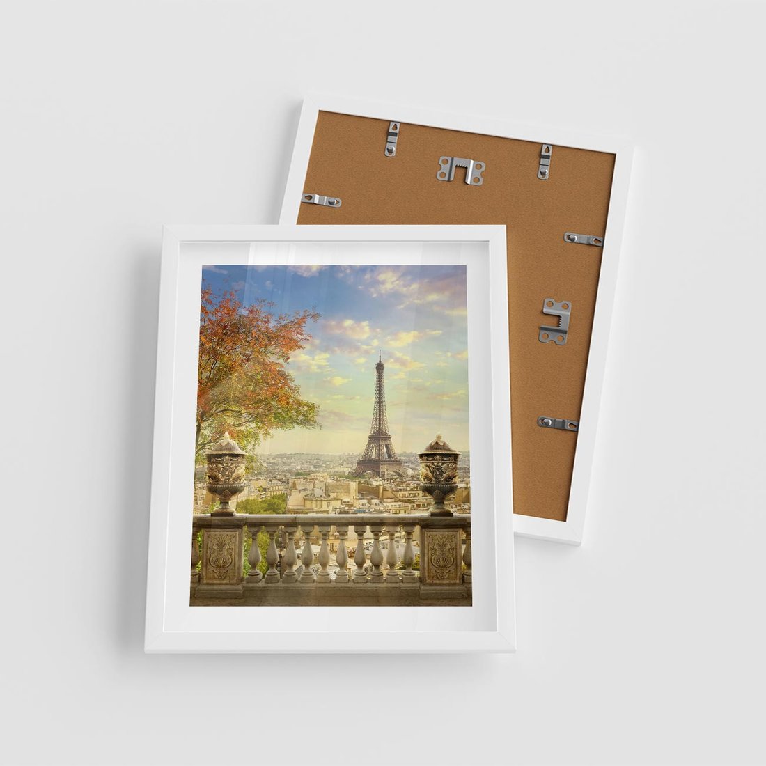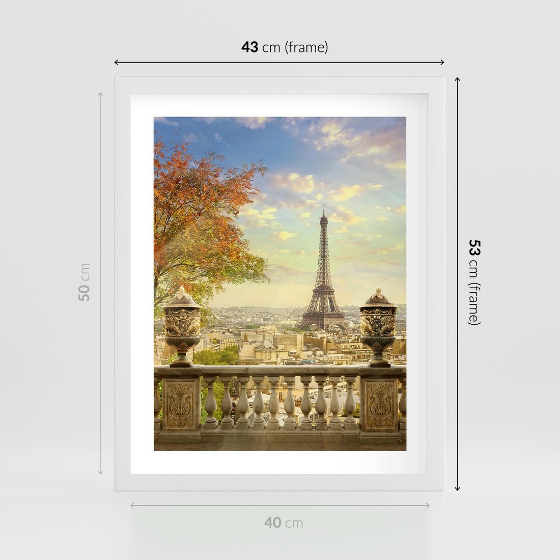 Plakat w ramie 40x50 - Paryż za Wieżą Eiffla - Paryż, Eiffla - rama biała