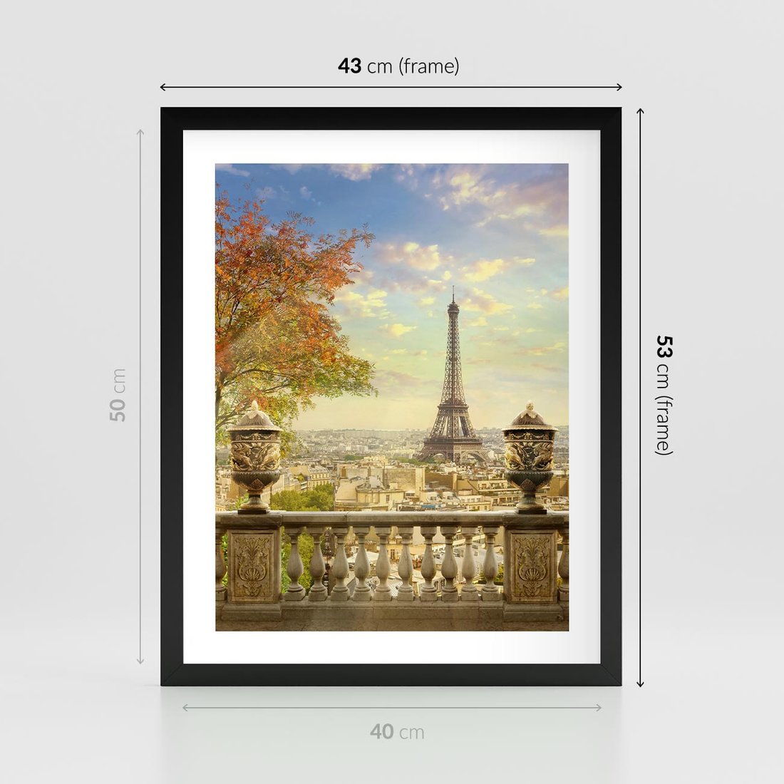 Plakat w ramie 40x50 - Paryż za Wieżą Eiffla - Paryż, Eiffla - rama czarna