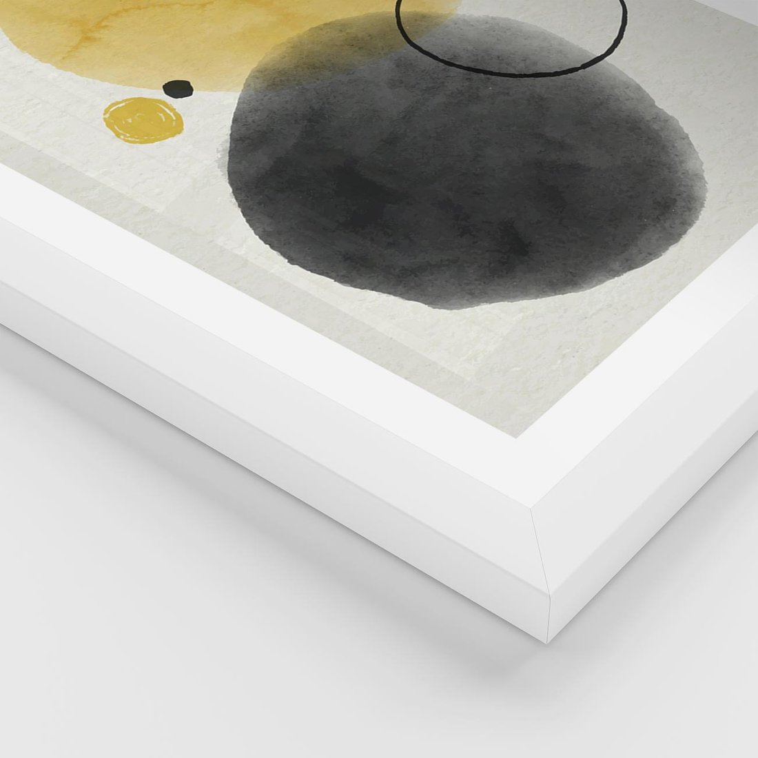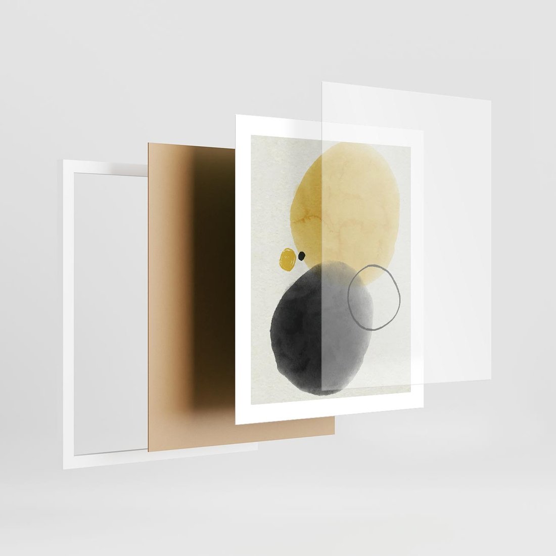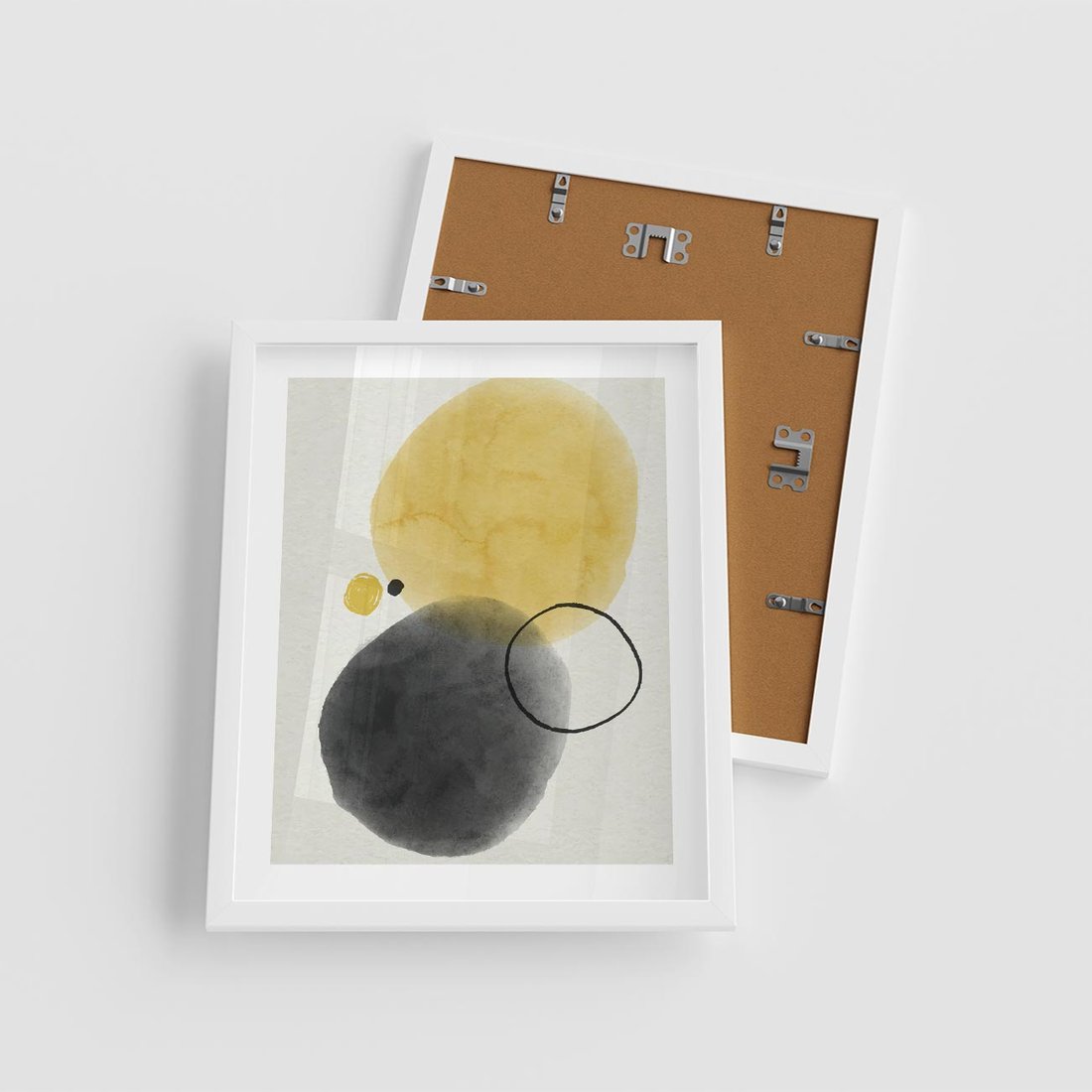 Nasza abstrakcja to zmysłowa kombinacja akwarelowych plam w kontrastujących odcieniach czerni i żółtego. To artystyczne połączenie tworzy fascynujący dialog między kolorami, dodając dynamiczności i głębi do przestrzeni.