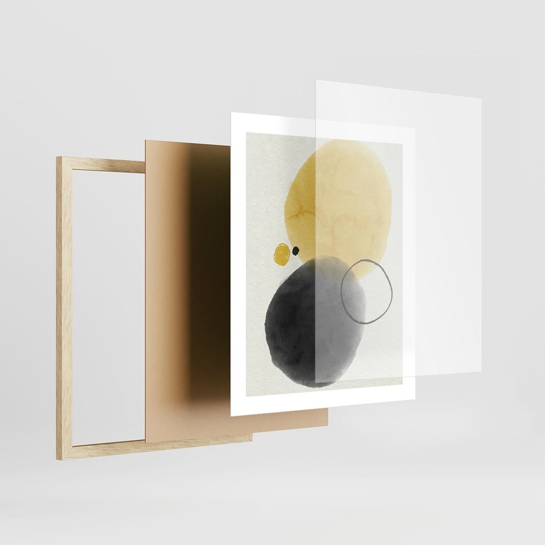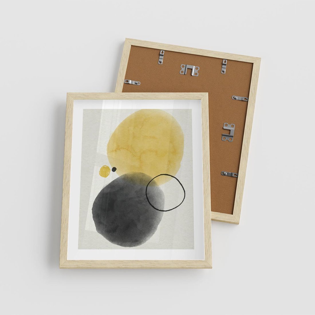 Nasza abstrakcja to zmysłowa kombinacja akwarelowych plam w kontrastujących odcieniach czerni i żółtego. To artystyczne połączenie tworzy fascynujący dialog między kolorami, dodając dynamiczności i głębi do przestrzeni.