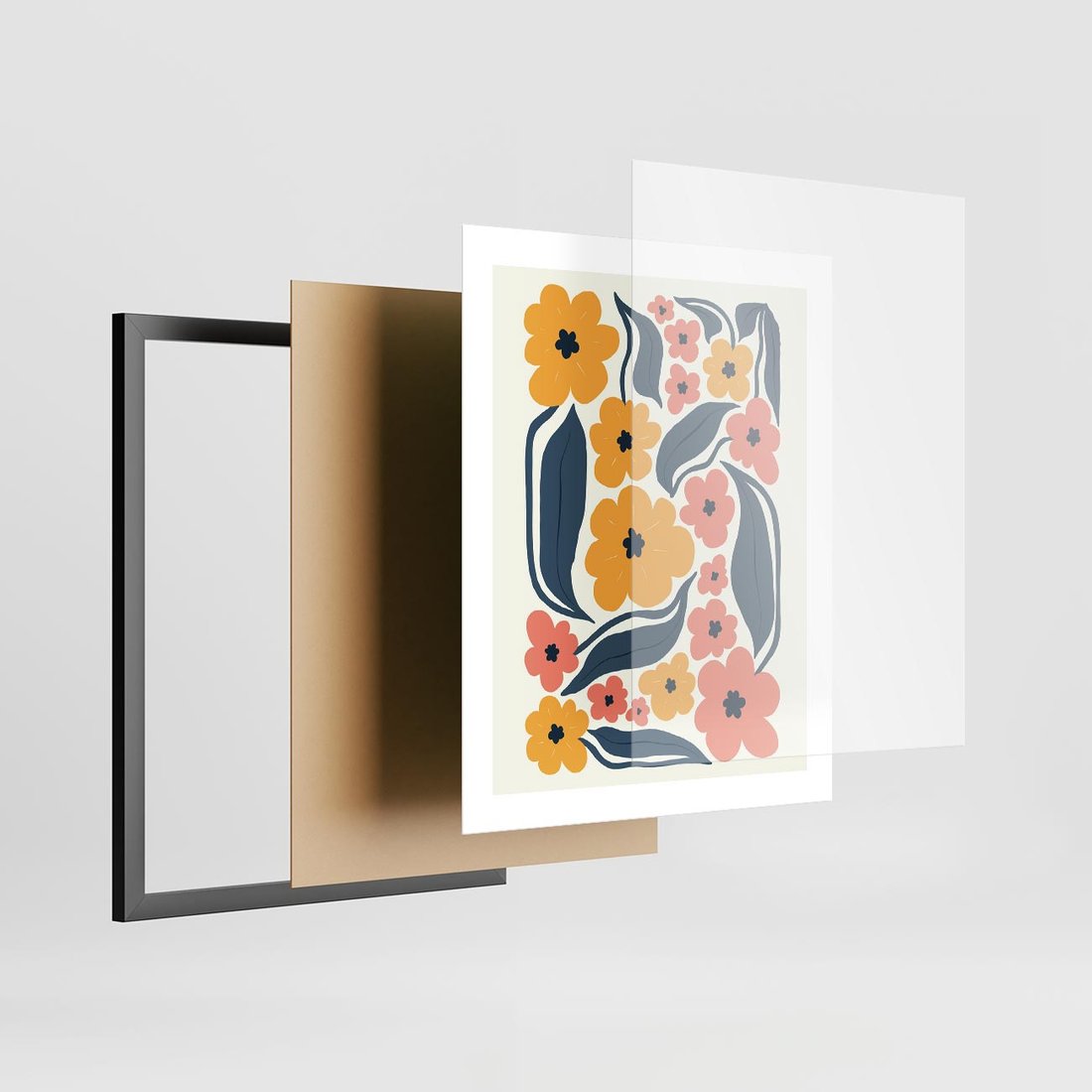 Ten plakat w nowoczesnej sztuce abstrakcji przedstawia pastelowe kwiatowe impresje. Kompozycja tworzy unikalną wizję natury, łącząc delikatność kwiatów z wyrazistą nowoczesnością.