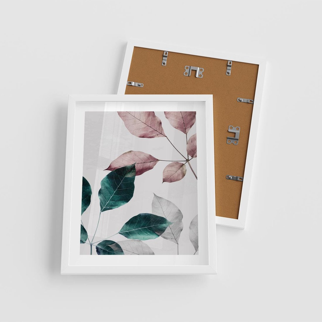 Plakat w ramie 40x50 - Pastelowe Liście w Minimalizmie - pastelowe liście, minimalistyczny obraz - rama biała