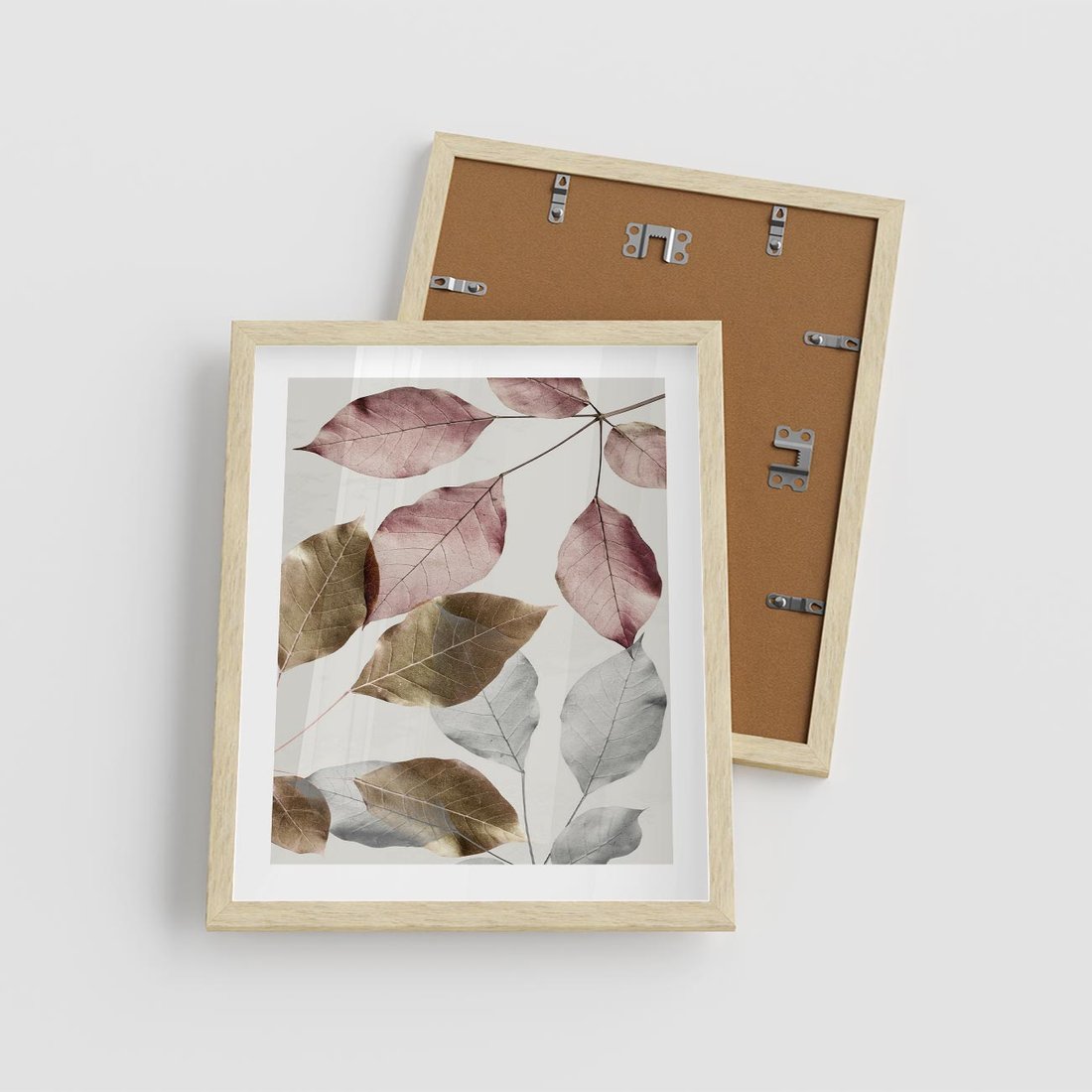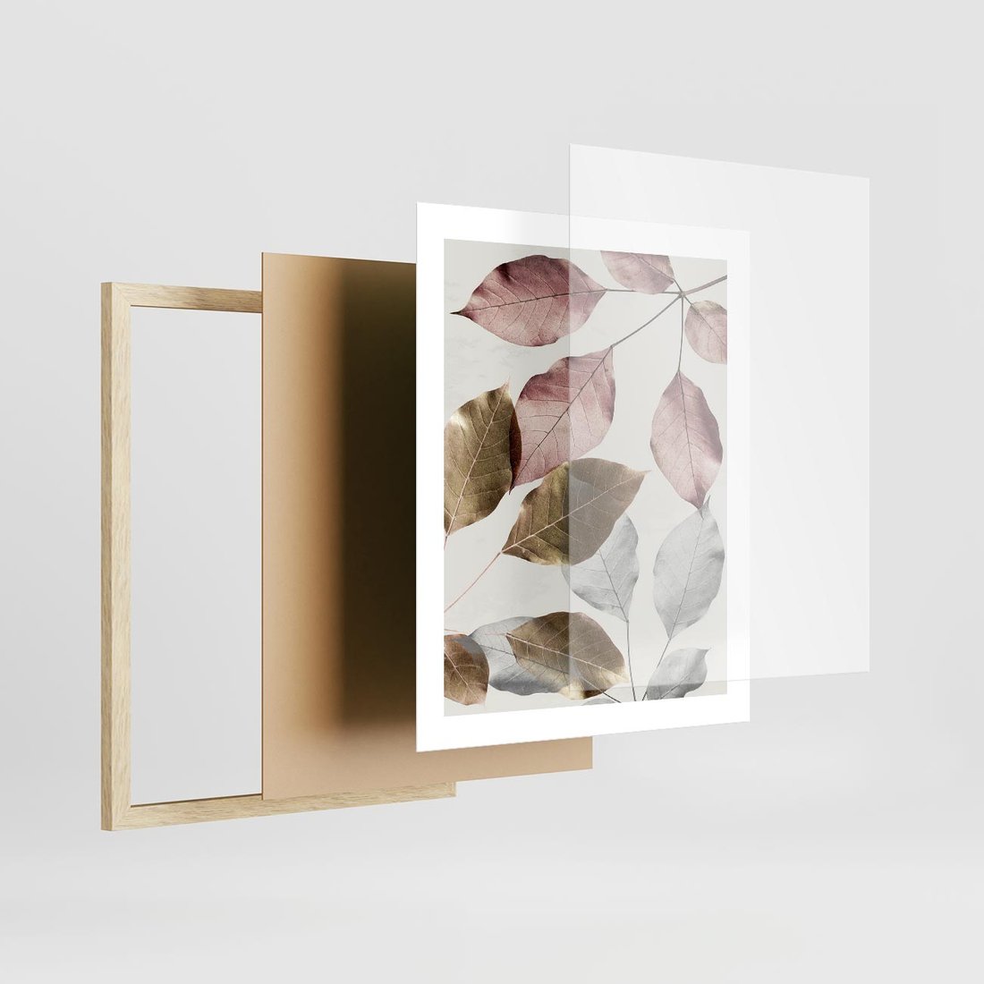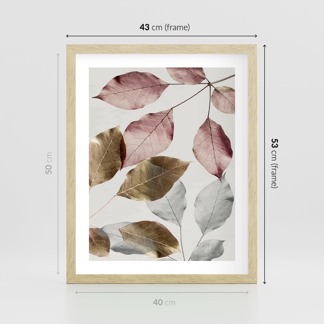 - Plakat w ramie 40x50 - Pastelowe Liście z Nutką Złota