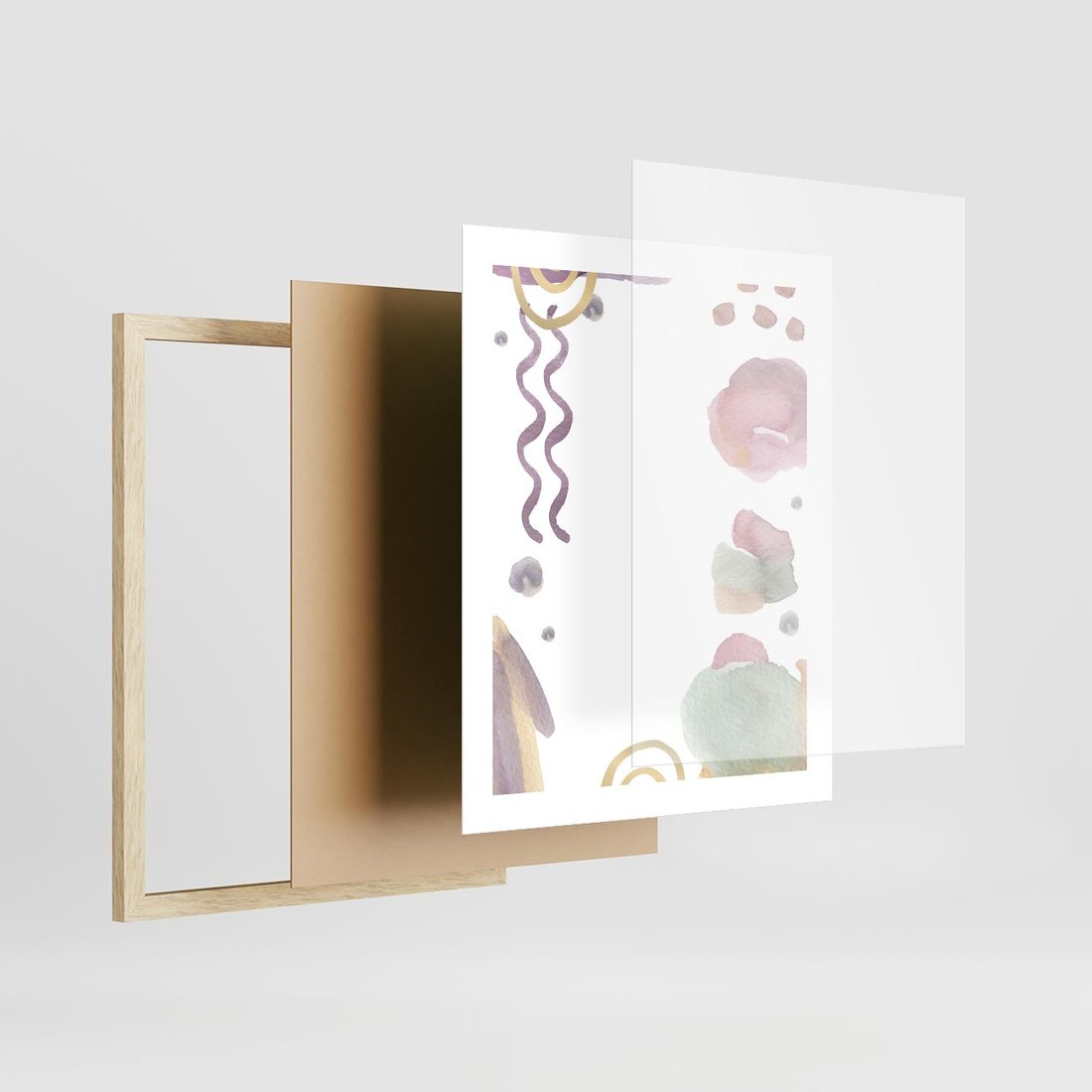 Plakat w ramie 40x50 - Pastelowe Wnętrza Emocji - abstrakcyjny palakt, akwarelowe plamy - rama drewno