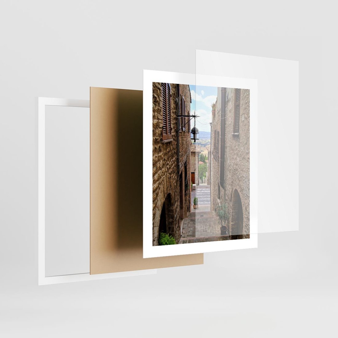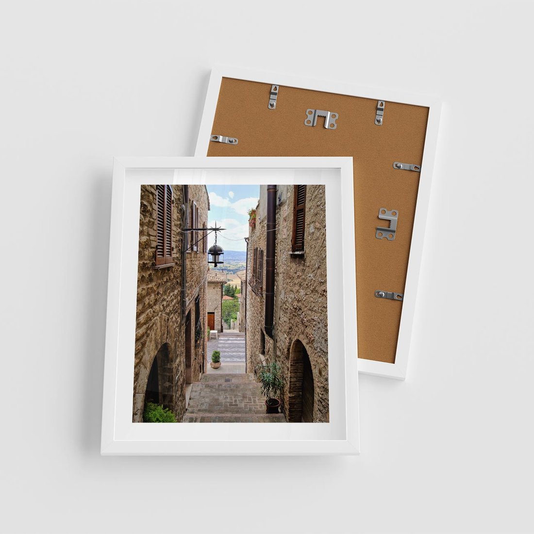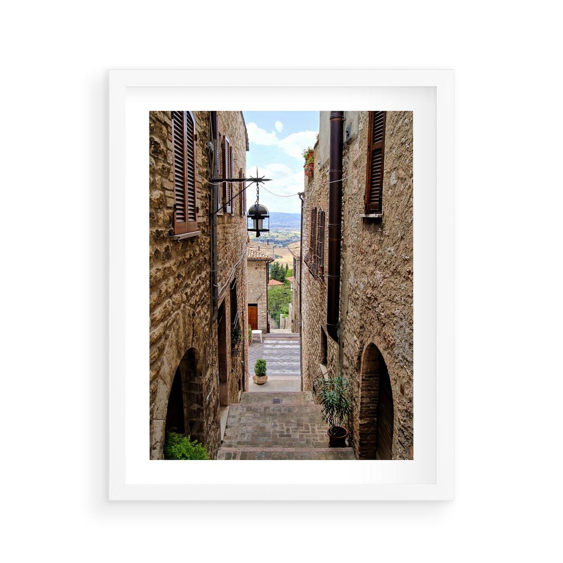Plakat w ramie 40x50 - Perspektywa malowniczej uliczki - uliczka, perspektywa - rama biała