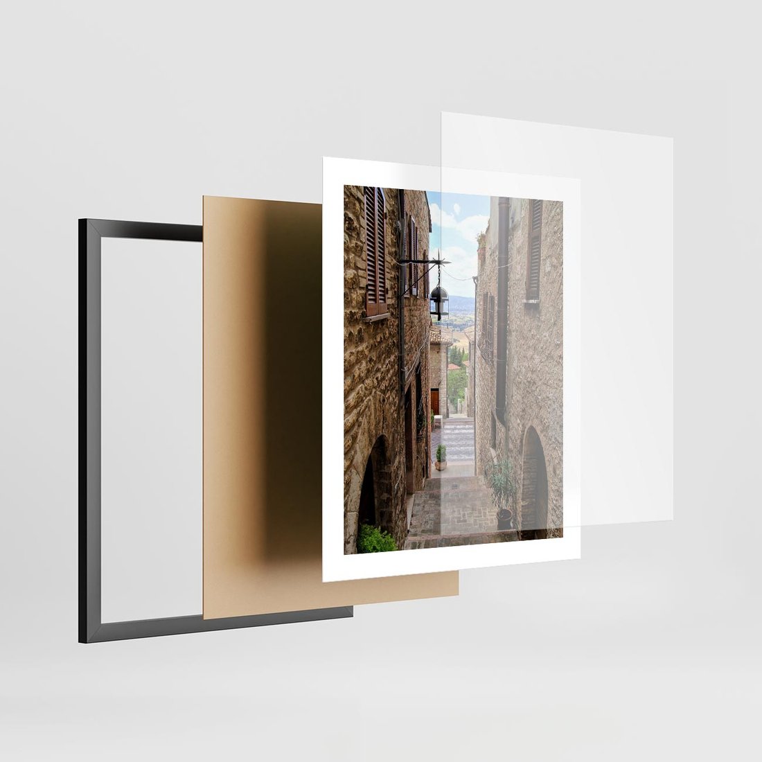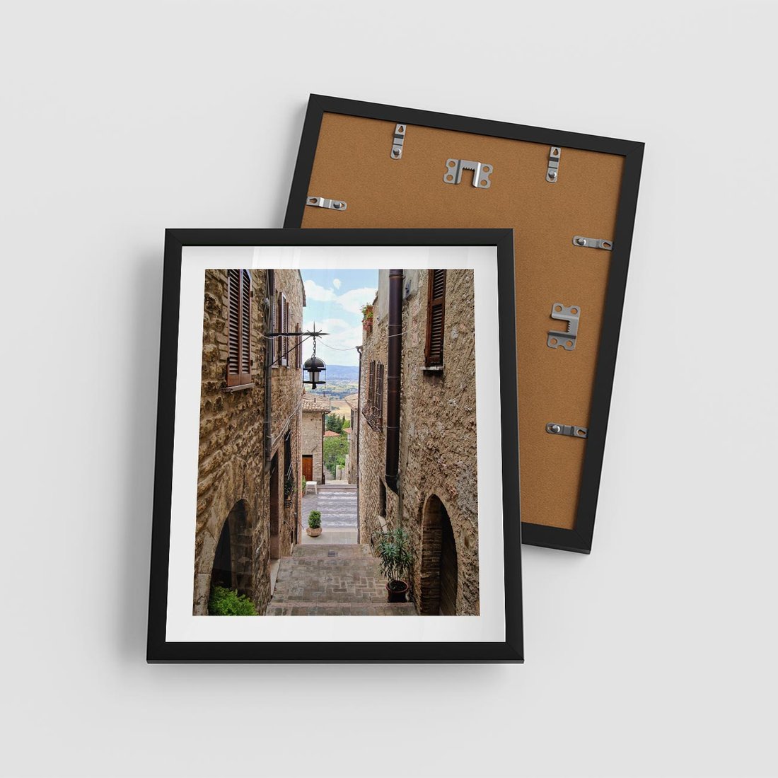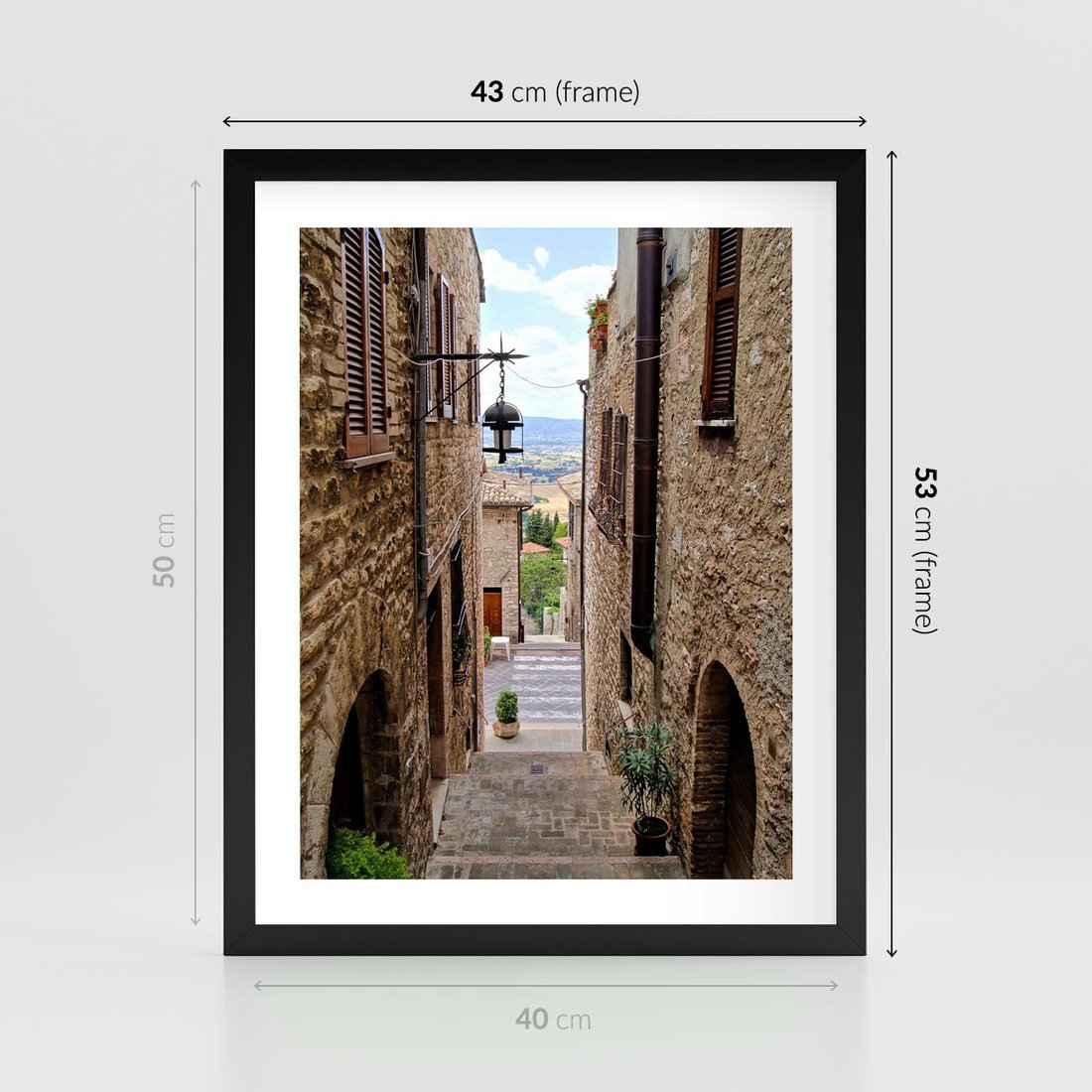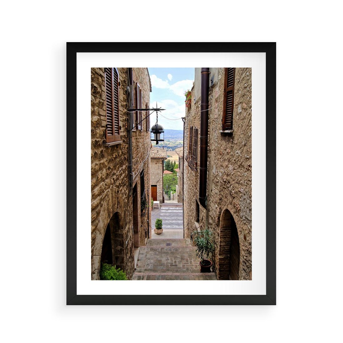 Plakat w ramie 40x50 - Perspektywa malowniczej uliczki - uliczka, perspektywa - rama czarna