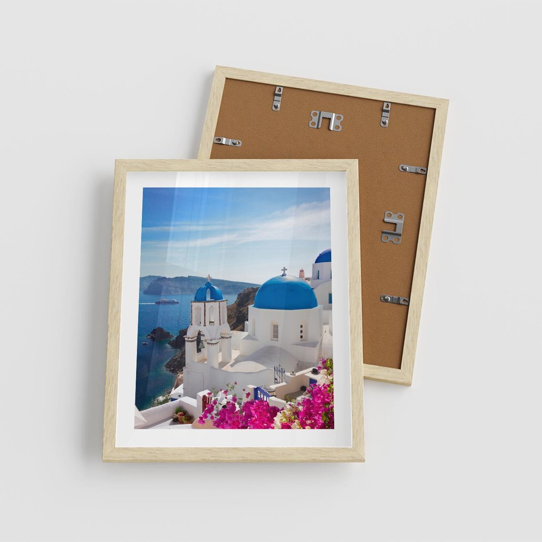 Plakat w ramie 40x50 - Perspektywa na Santorini - Santorini, perspektywa - rama drewno