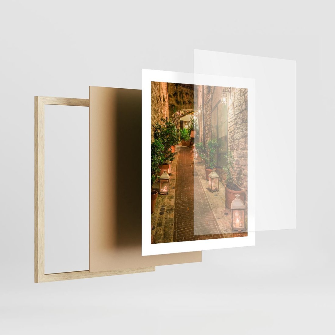 Plakat w ramie 40x50 - Perspektywa Uliczki Miejskiej - uliczka, perspektywa - rama drewno