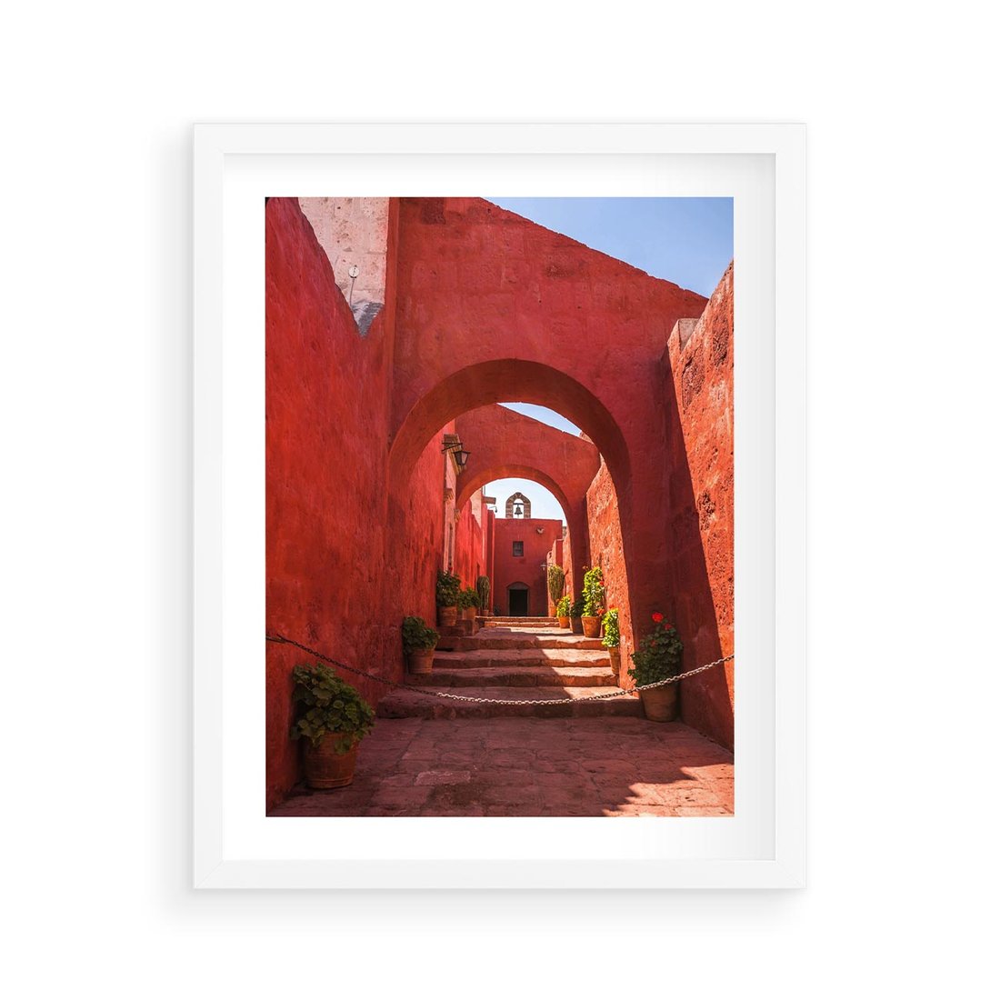 Plakat w ramie 40x50 - Perspektywa Uliczki - uliczka, perspektywa - rama biała