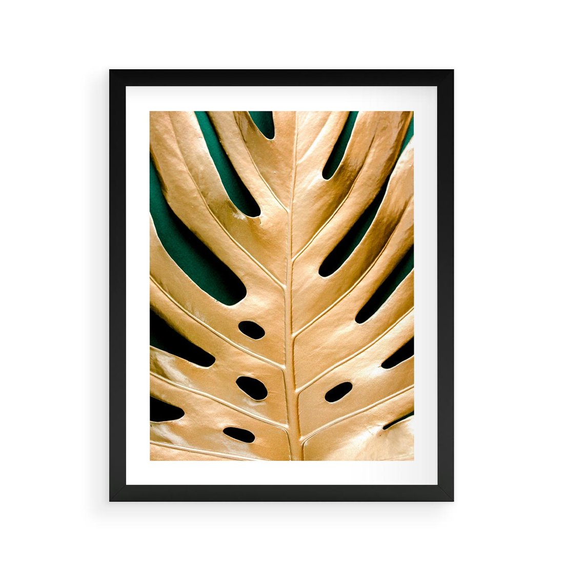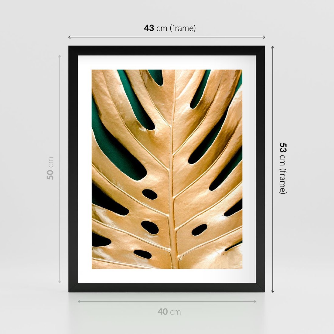 Plakat w ramie 40x50 - Piękno i Styl - złote, liście - rama czarna