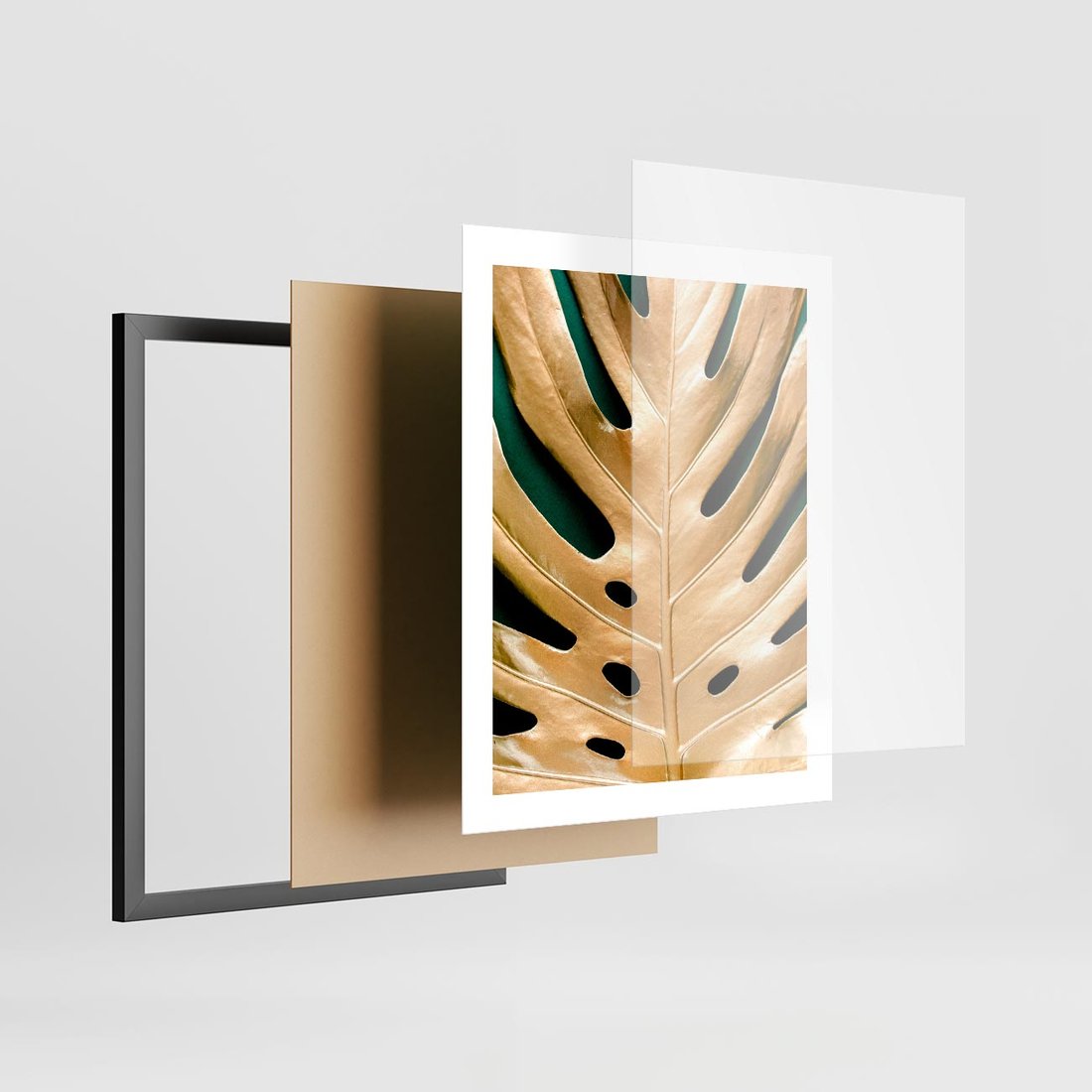 Odkryj piękno i styl złotych liści monstera na obrazie. Dodaj swojemu wnętrzu wyjątkowego uroku i odczuj elegancję, która emanuje z tej minimalistycznej kompozycji.