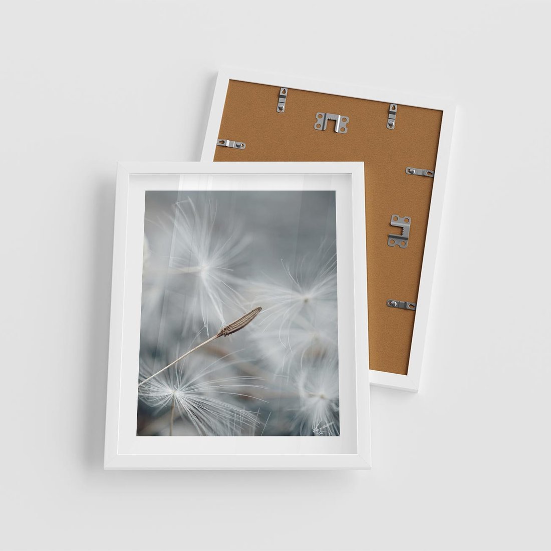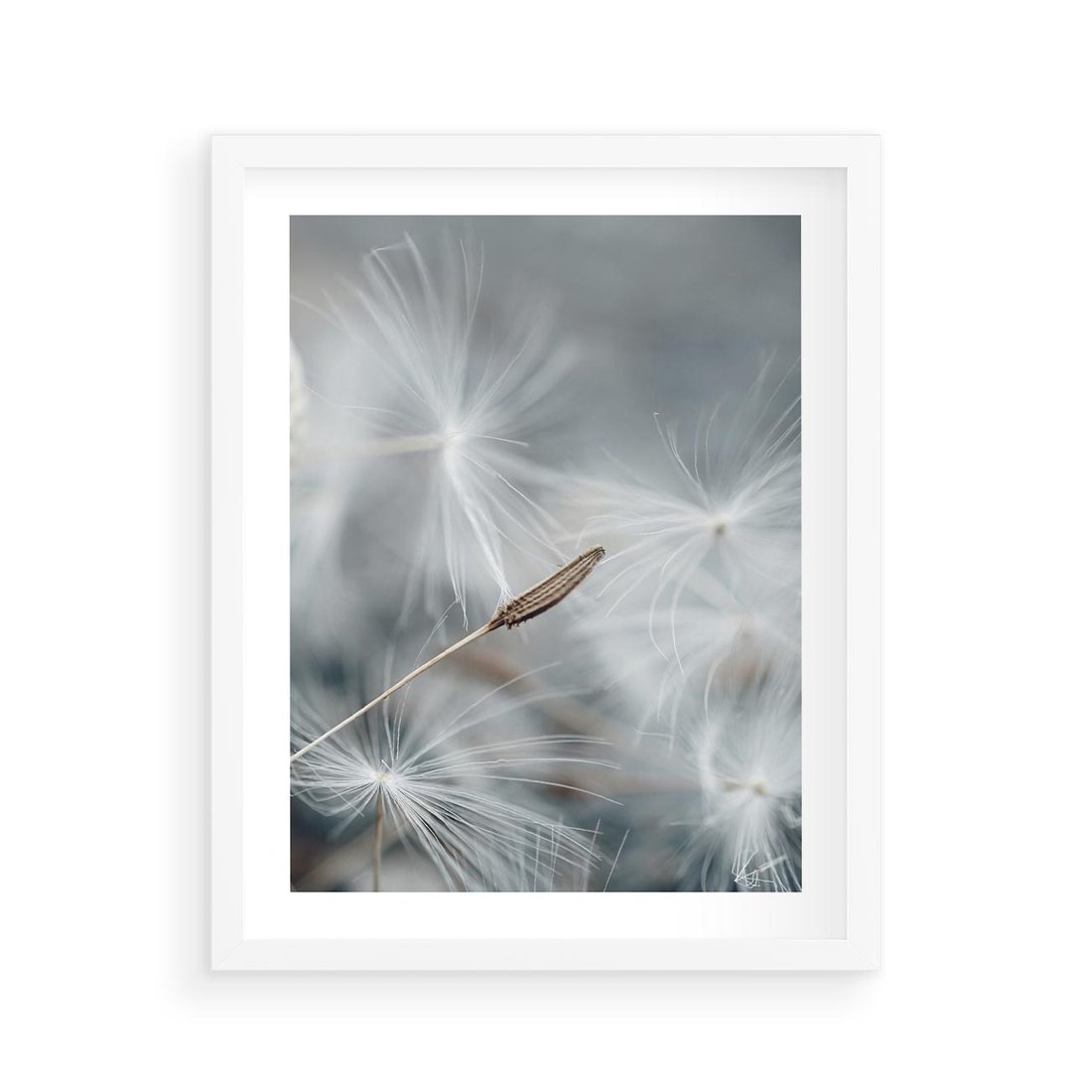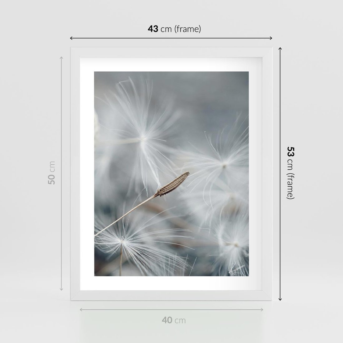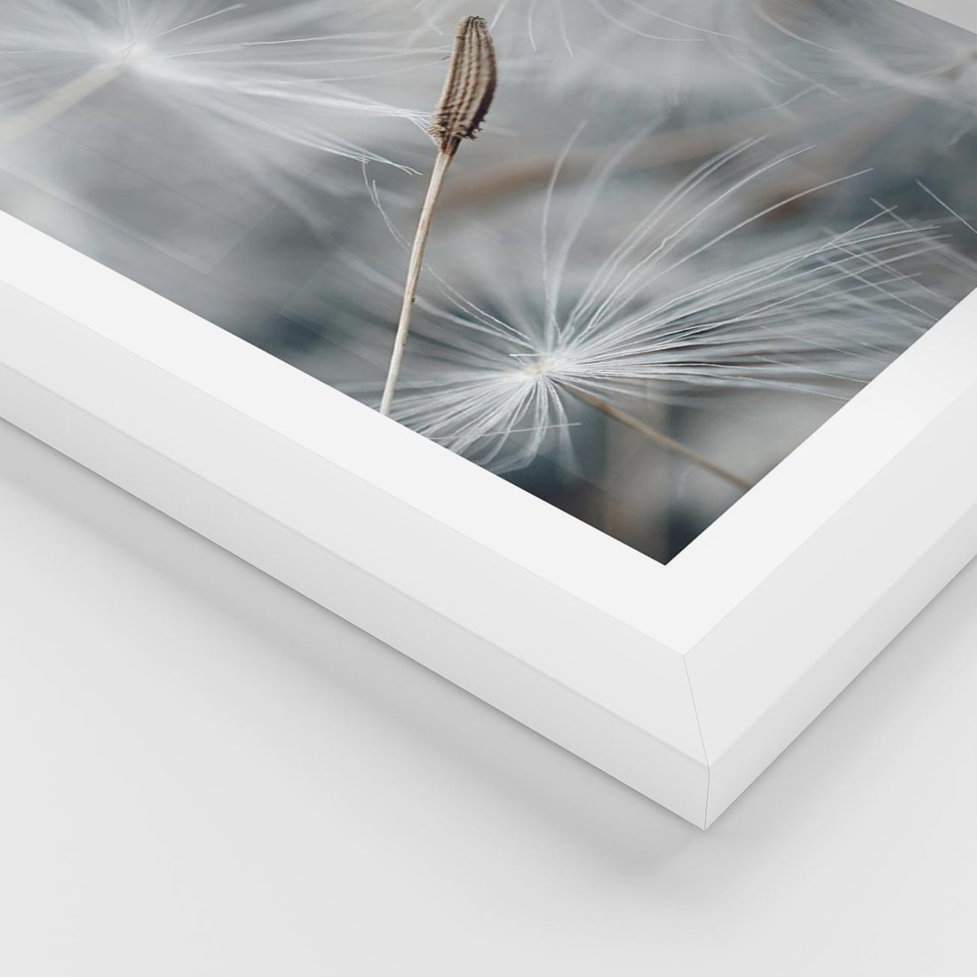 Plakat w ramie 40x50 - Piękno w Delikatności - dmuchawiec, makro zdjęcie - rama biała