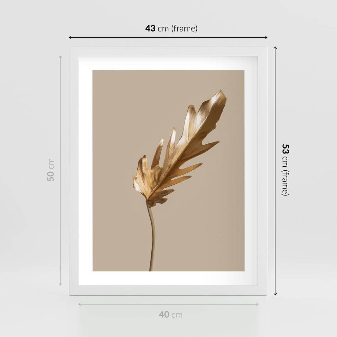 Plakat w ramie 40x50 - Piękno w Detalu - złoty, liść - rama biała