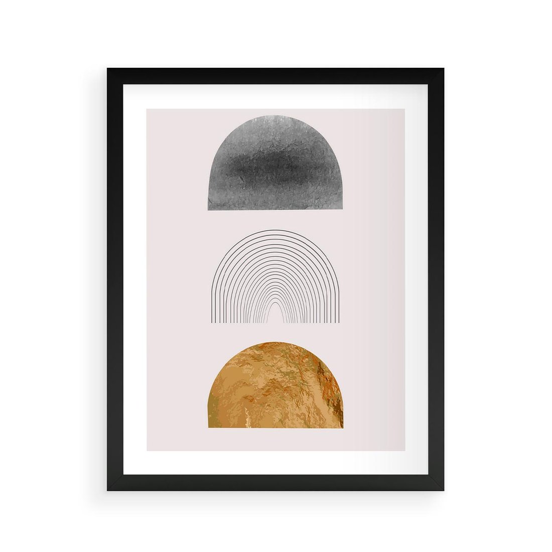 Plakat w ramie 40x50 - Piękno wGeometrycznych Kształtach i Złocie - nowoczesna geometryczna grafika, złote elementy - rama czarna