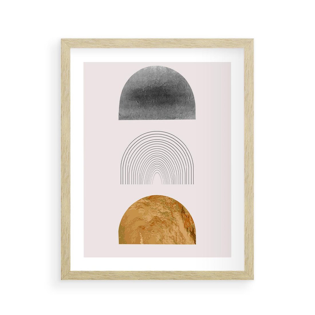 Plakat w ramie 40x50 - Piękno wGeometrycznych Kształtach i Złocie - nowoczesna geometryczna grafika, złote elementy - rama drewno