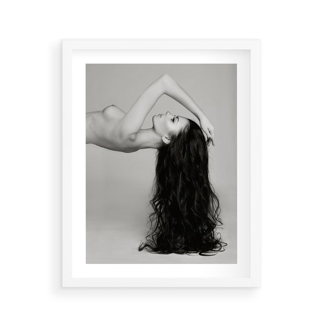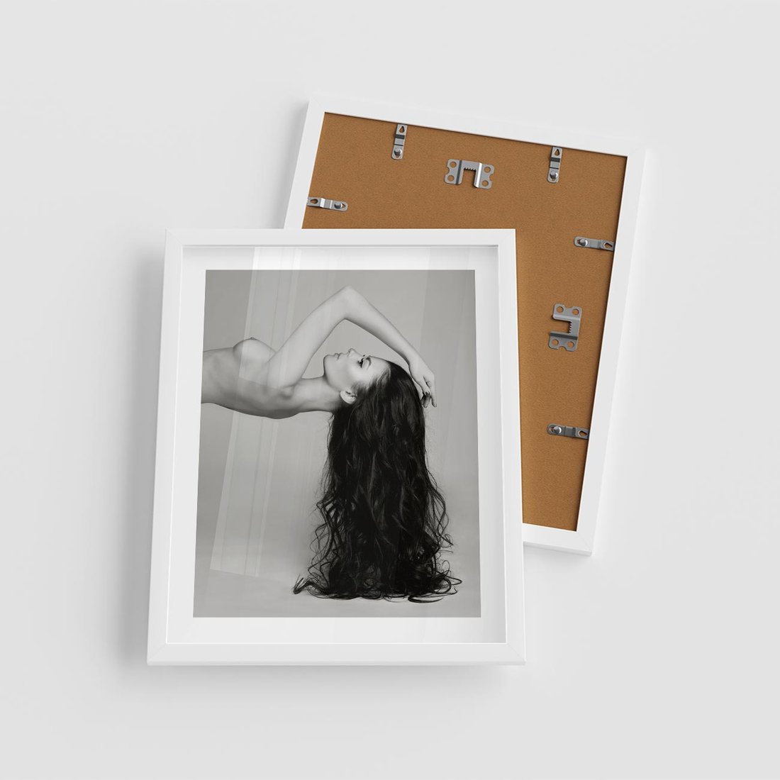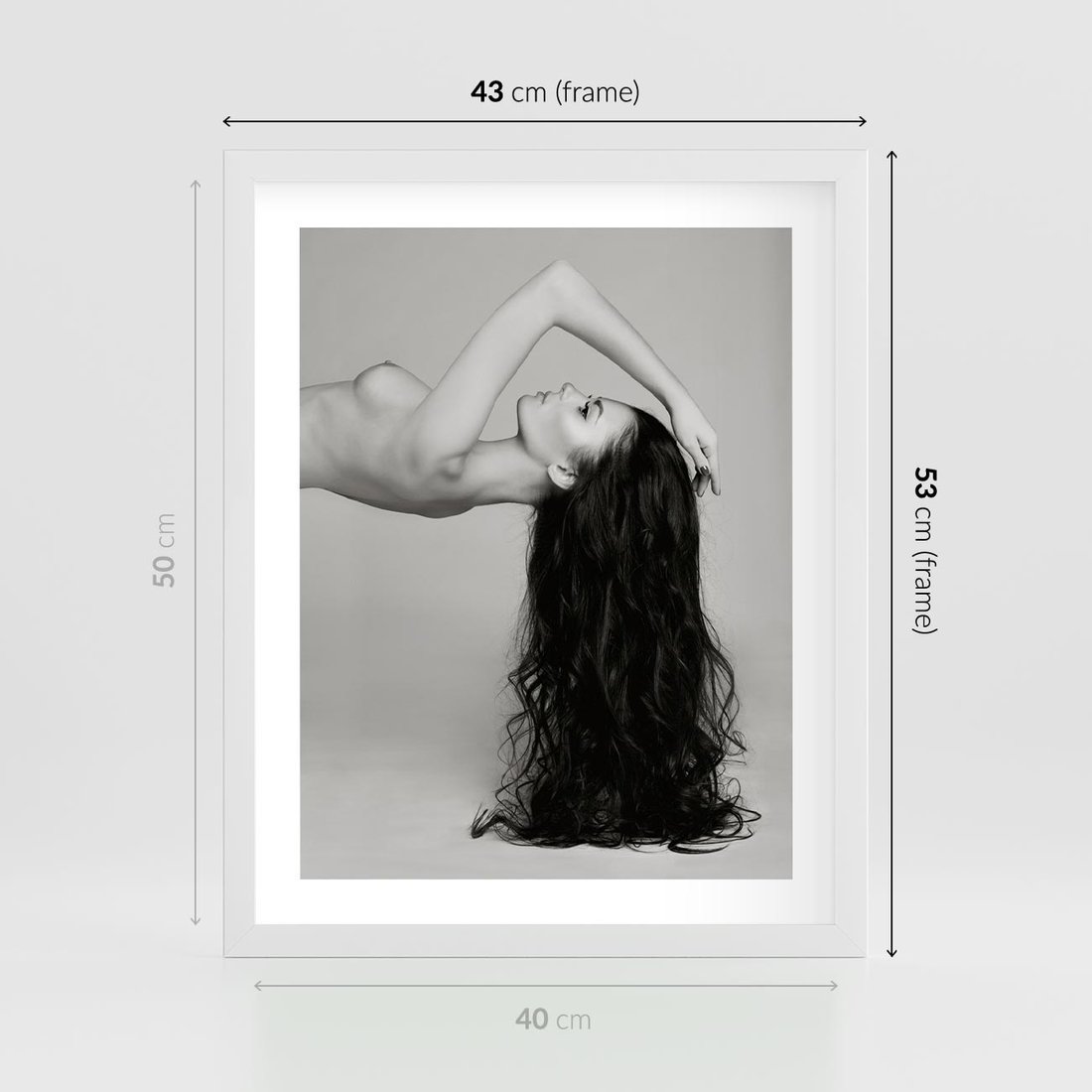 Plakat w ramie 40x50 - Piękno włosów kobiety w ruchu - włosy, piękno - rama biała