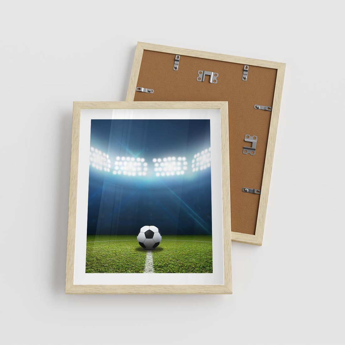 Plakat w ramie 40x50 - Piłka w drodze do gola - piłka, gol - rama drewno