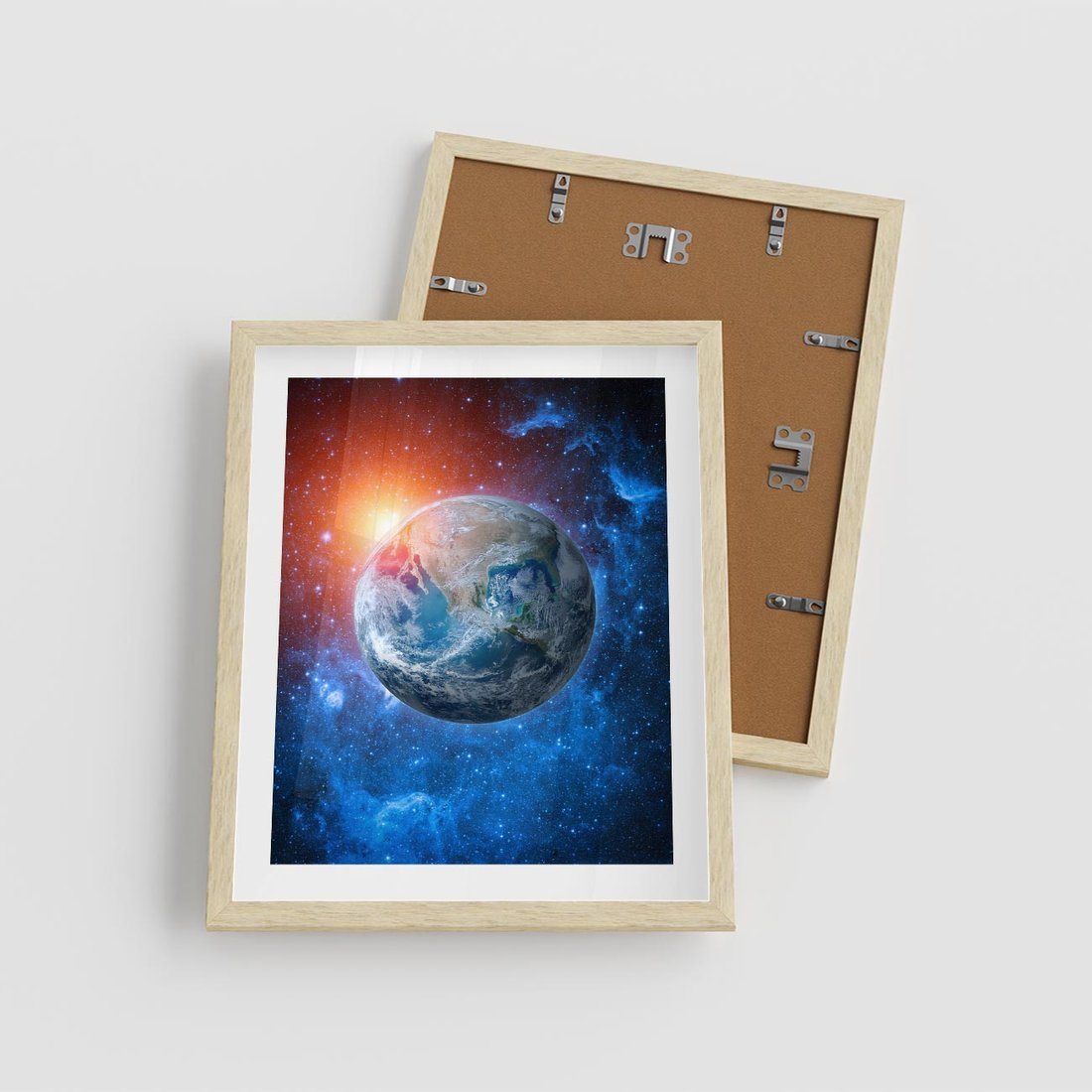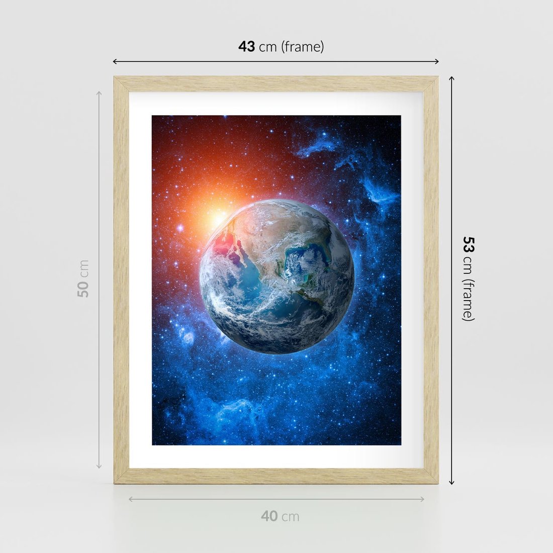 Plakat w ramie 40x50 - Planeta w nieskończoności - ziemia, kosmos - rama drewno