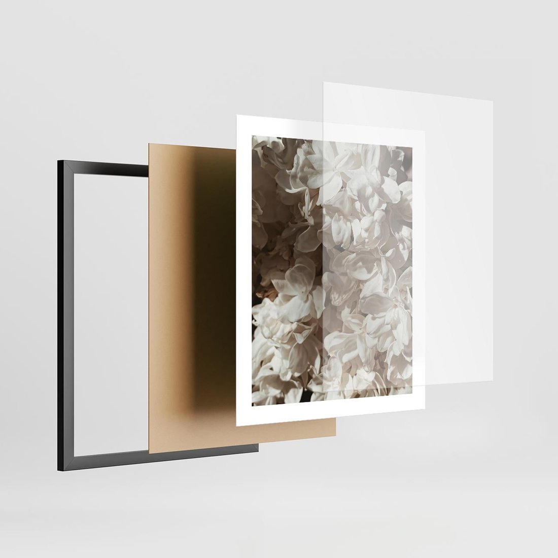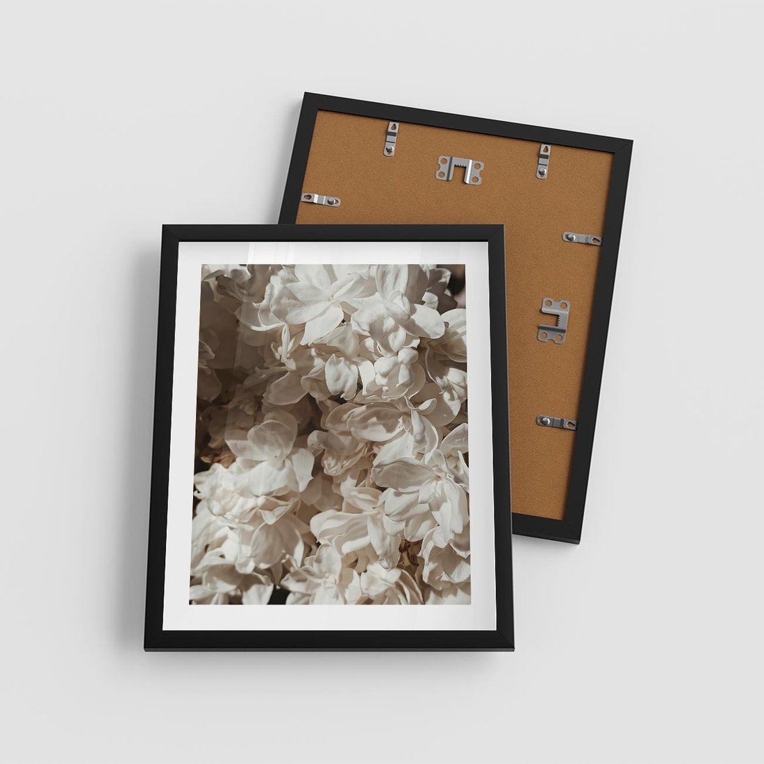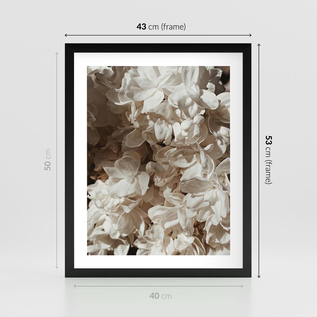Plakat w ramie 40x50 - Płatki w Detalu - białe kwiaty, zbliżenie - rama czarna