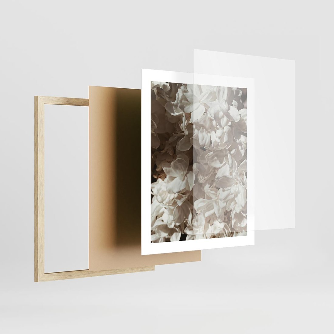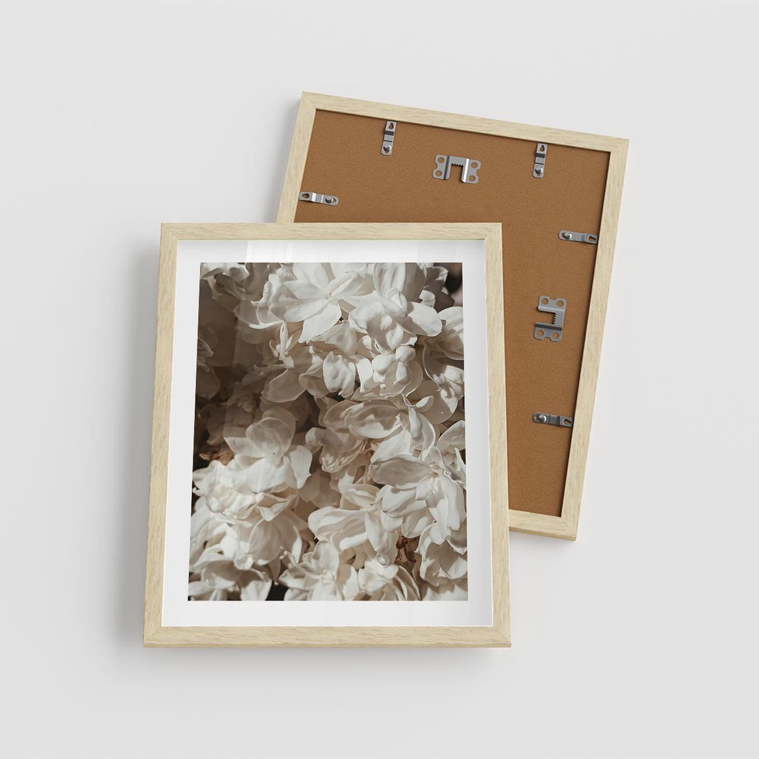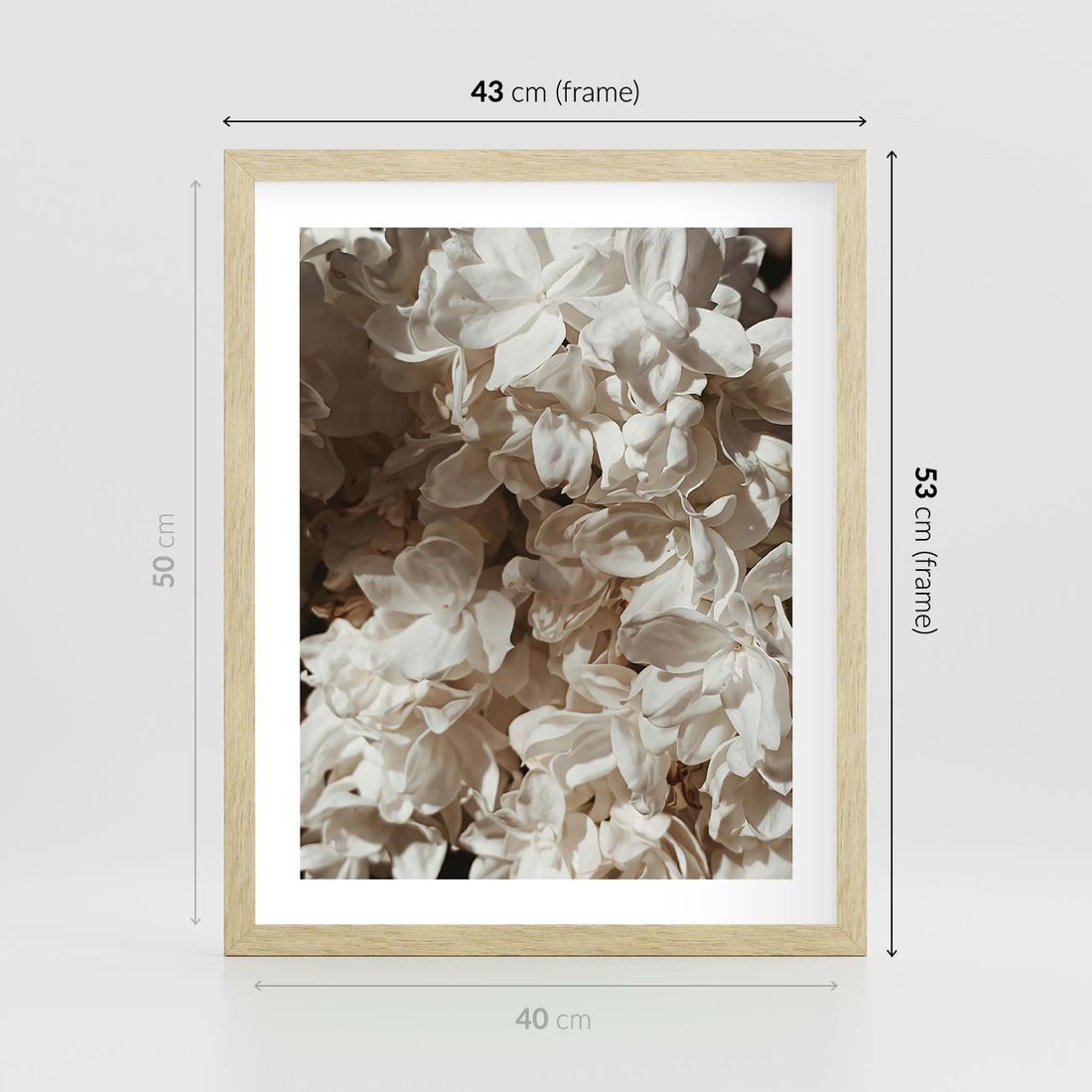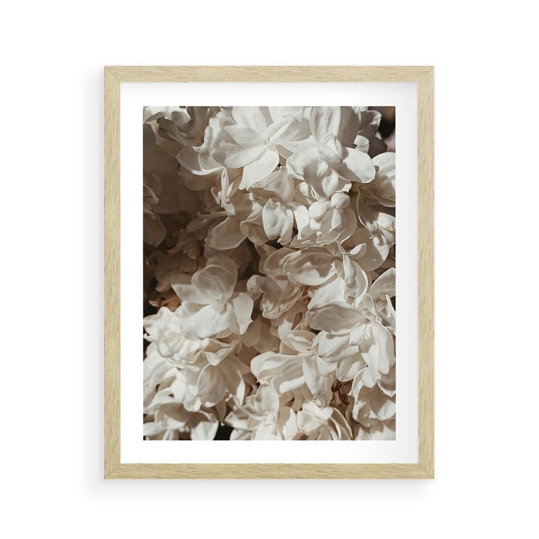 Plakat w ramie 40x50 - Płatki w Detalu - białe kwiaty, zbliżenie - rama drewno