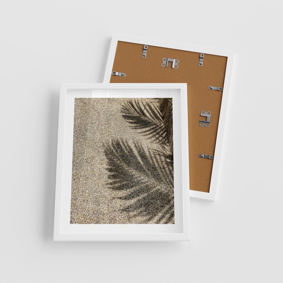 Plakat w ramie 40x50 - Plażowa Idylla - palma, cień na piasku - rama biała