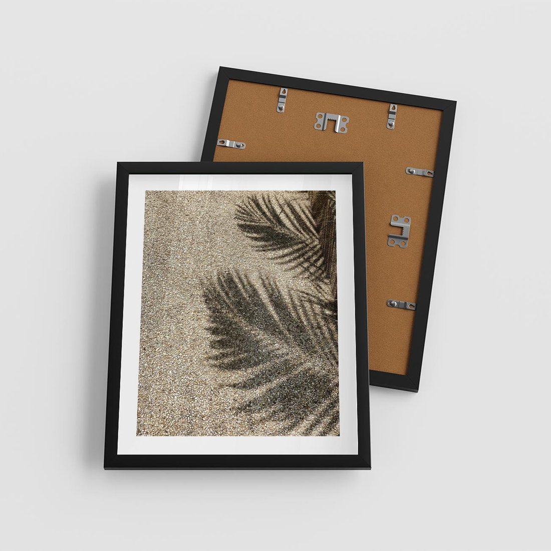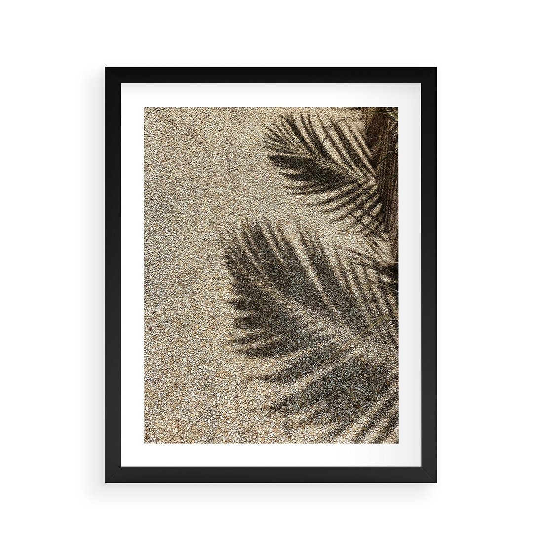 Plakat w ramie 40x50 - Plażowa Idylla - palma, cień na piasku - rama czarna