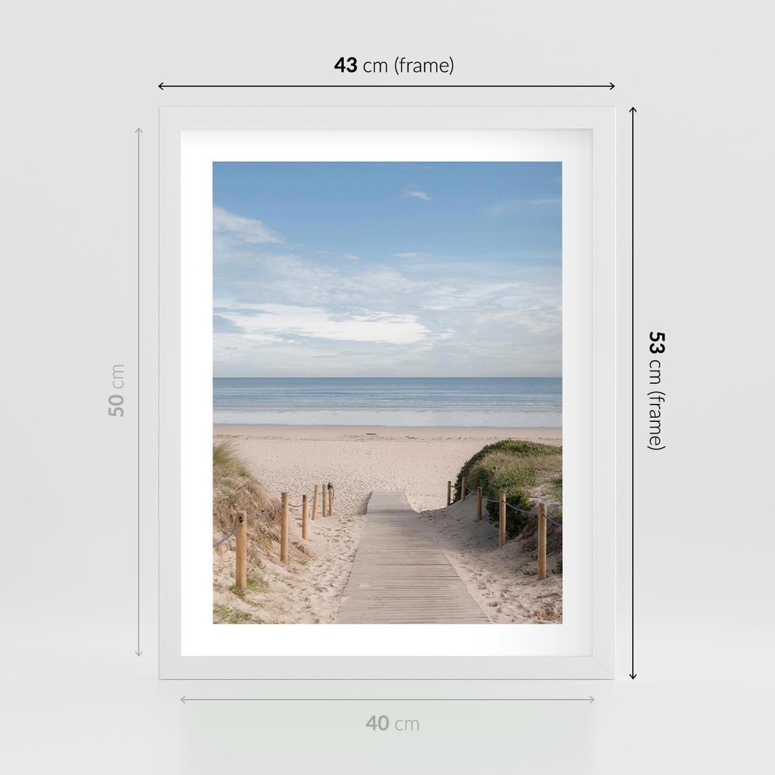 Plakat w ramie 40x50 - Plażowy pomost - plaża, pomost - rama biała