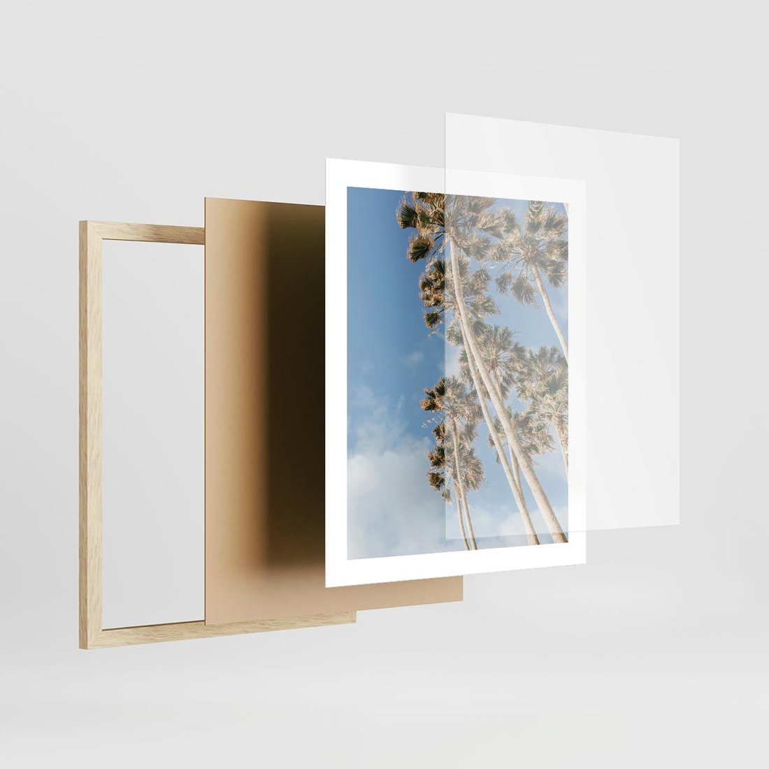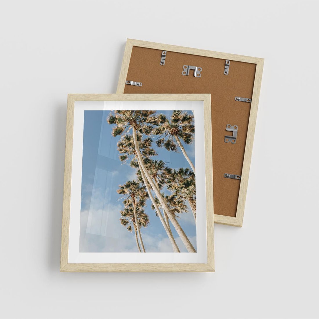 Plakat w ramie 40x50 - Pod Niebem Palmy - palmy na niebieskim niebie - rama drewno