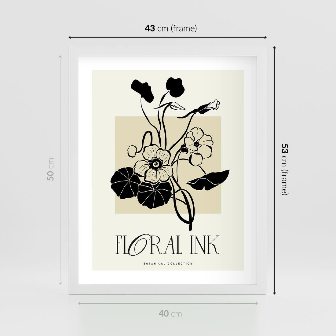 Plakat w ramie 40x50 - Podróż linii kwiatowego czasu - kwiaty, typografia - rama biała