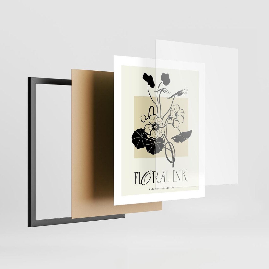 Plakat w ramie 40x50 - Podróż linii kwiatowego czasu - kwiaty, typografia - rama czarna
