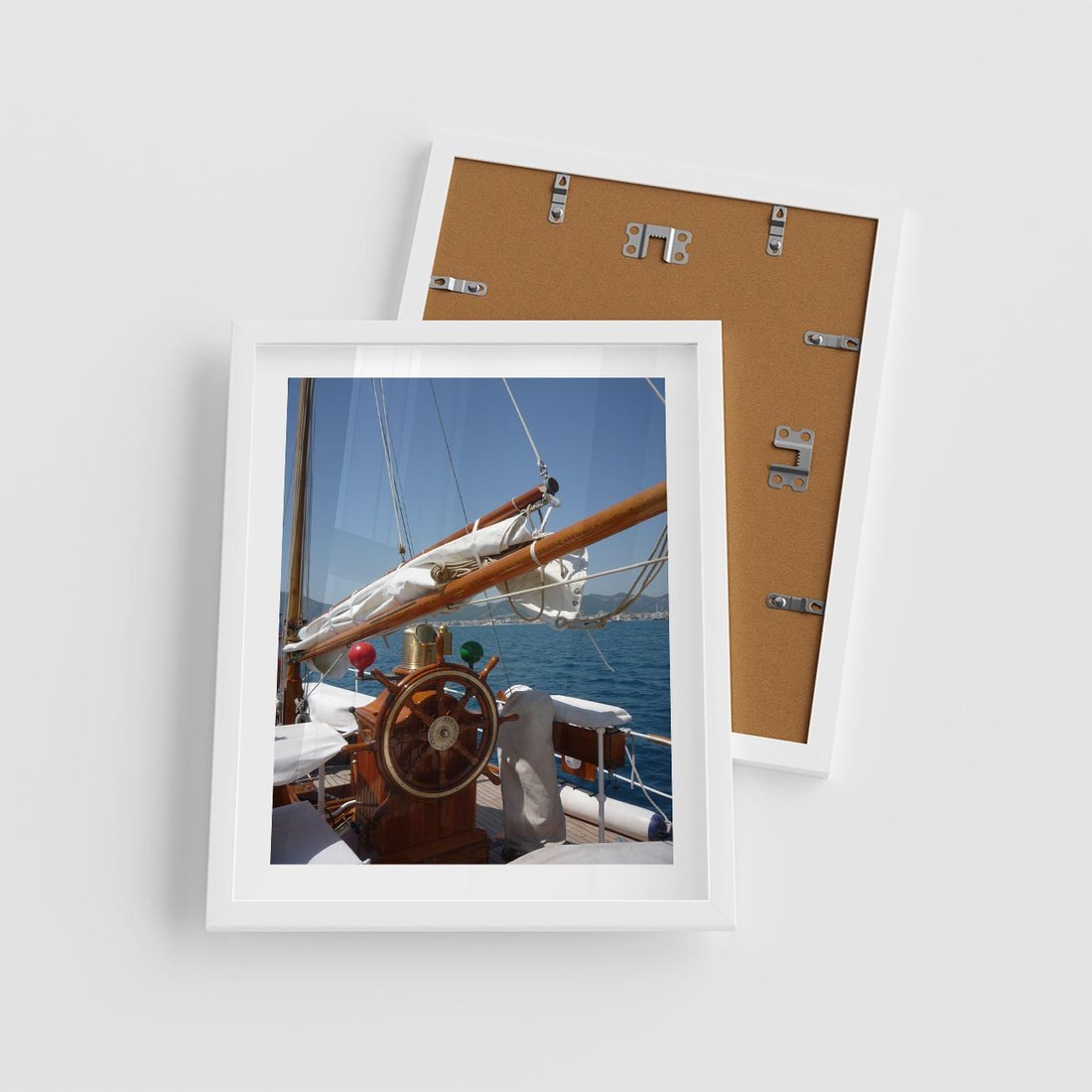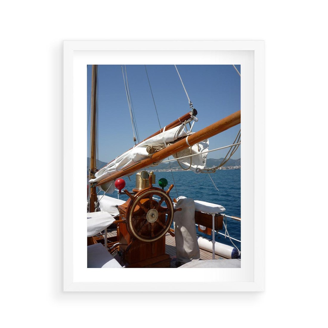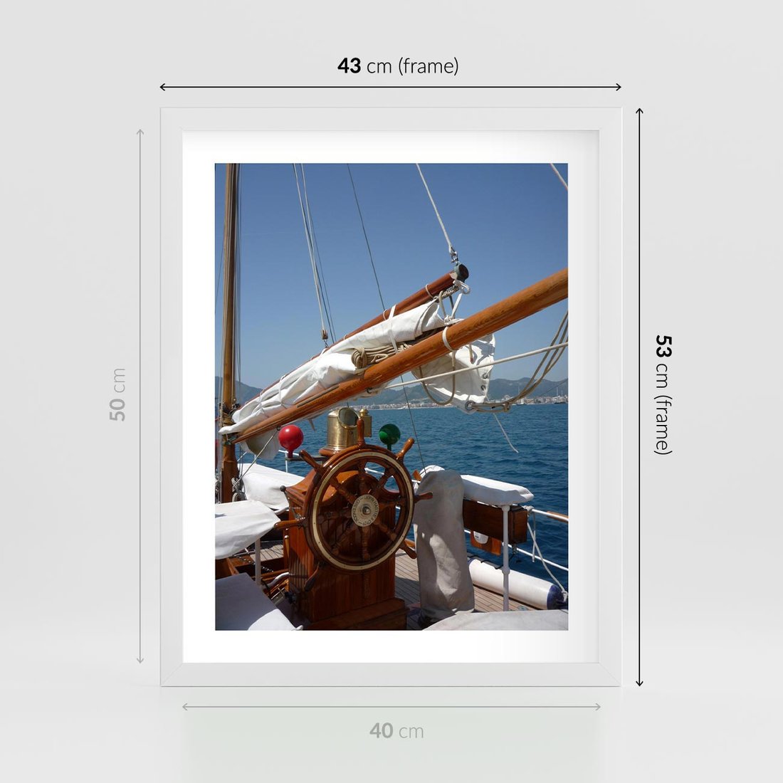Plakat w ramie 40x50 - Podróż Morska - statek, ster - rama biała