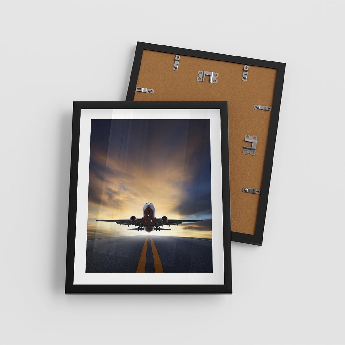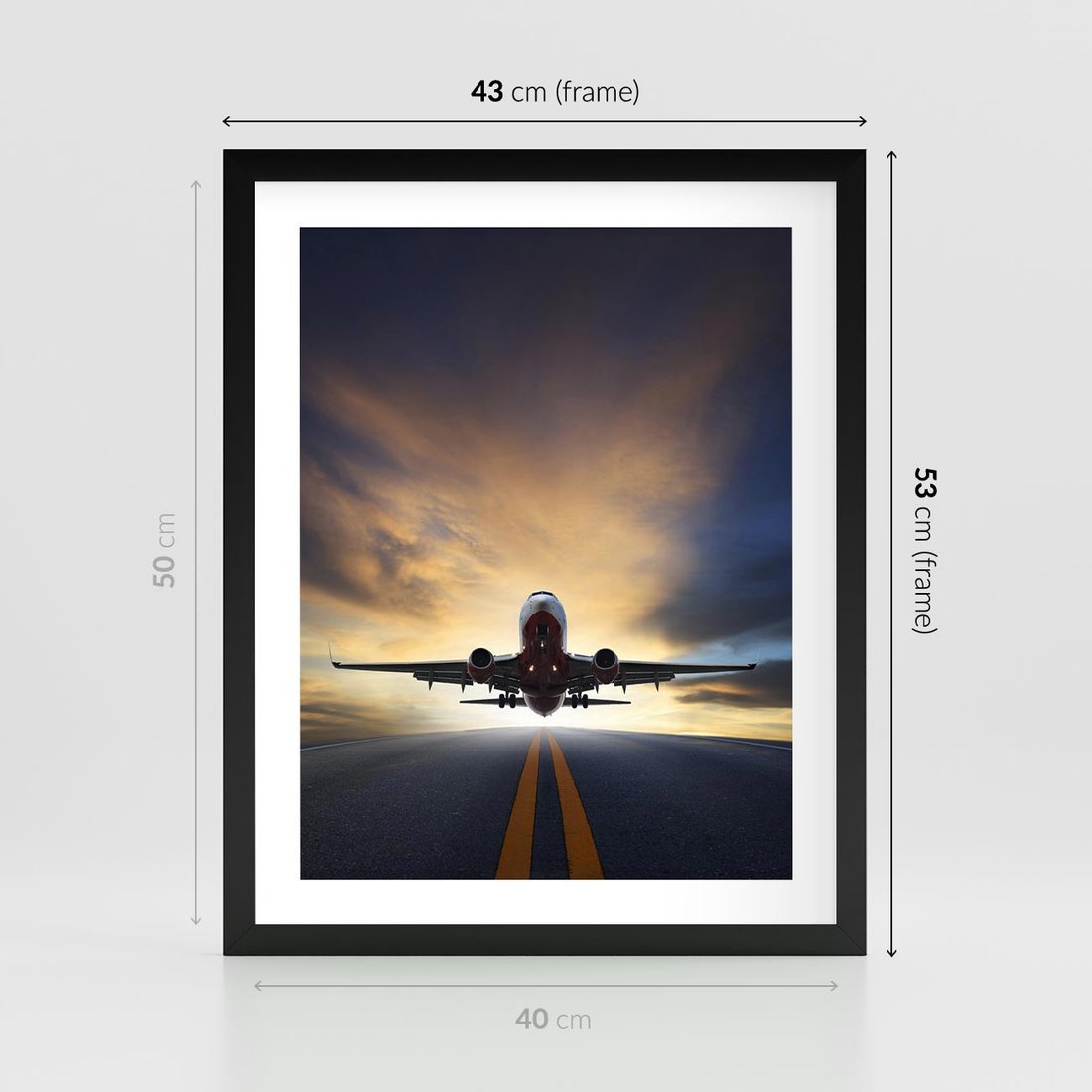 Plakat w ramie 40x50 - Podróż samolotem w pejzaż - samolot, podróż - rama czarna