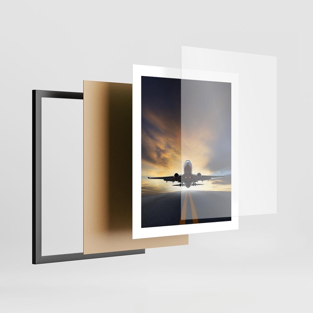 - Plakat w ramie 40x50 - Podróż samolotem w pejzaż