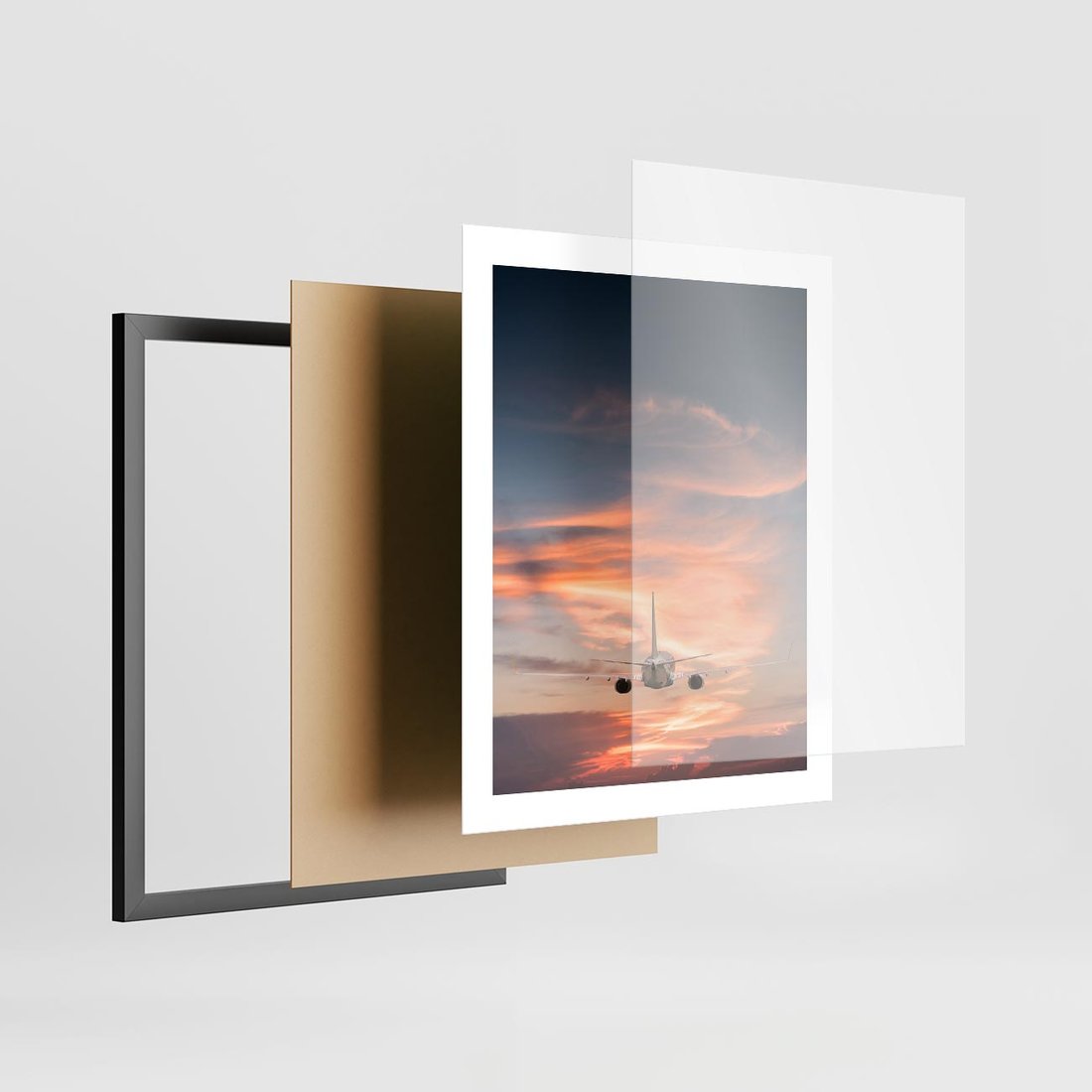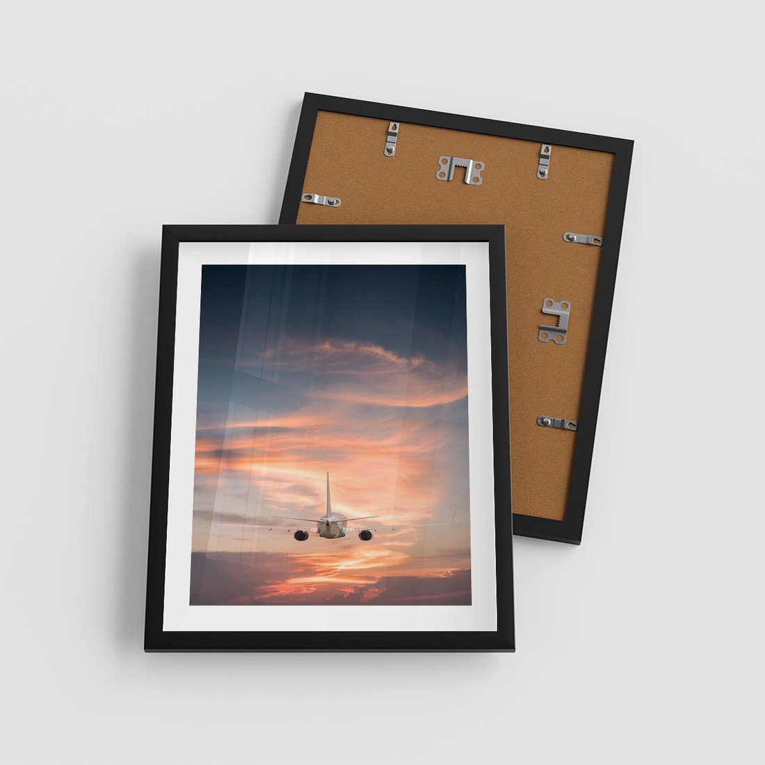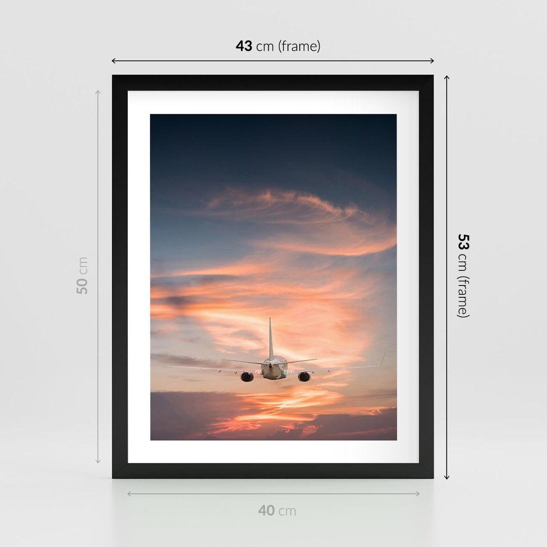 Plakat w ramie 40x50 - Podróż w Kierunku Słońca - samolot, samolot w powietrzu - rama czarna