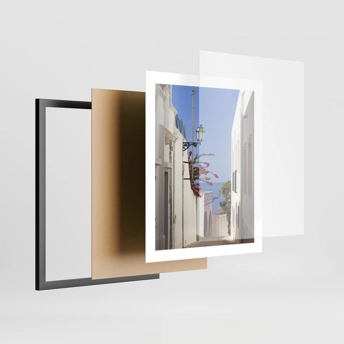 Plakat w ramie 40x50 - Podróże w Czasie: Perspektywiczna Uliczka - uliczka, perspektywa - rama czarna