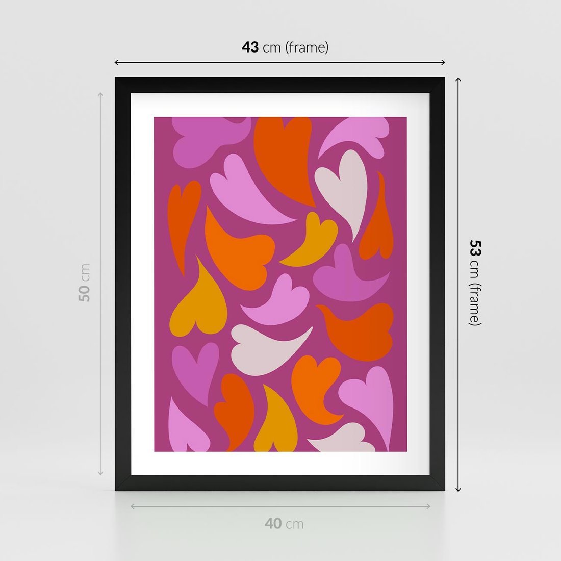 Ta wesoła grafika przenosi Cię z powrotem do lat 70., wypełniając przestrzeń energetycznymi kolorami i serduszkami. Styl lat 70. ożywa w tej kompozycji, tworząc atmosferę radości i pozytywnej energii. Plakat to hołd dla tej epoki, który wnosi uśmiech i witalność do Twojego otoczenia.