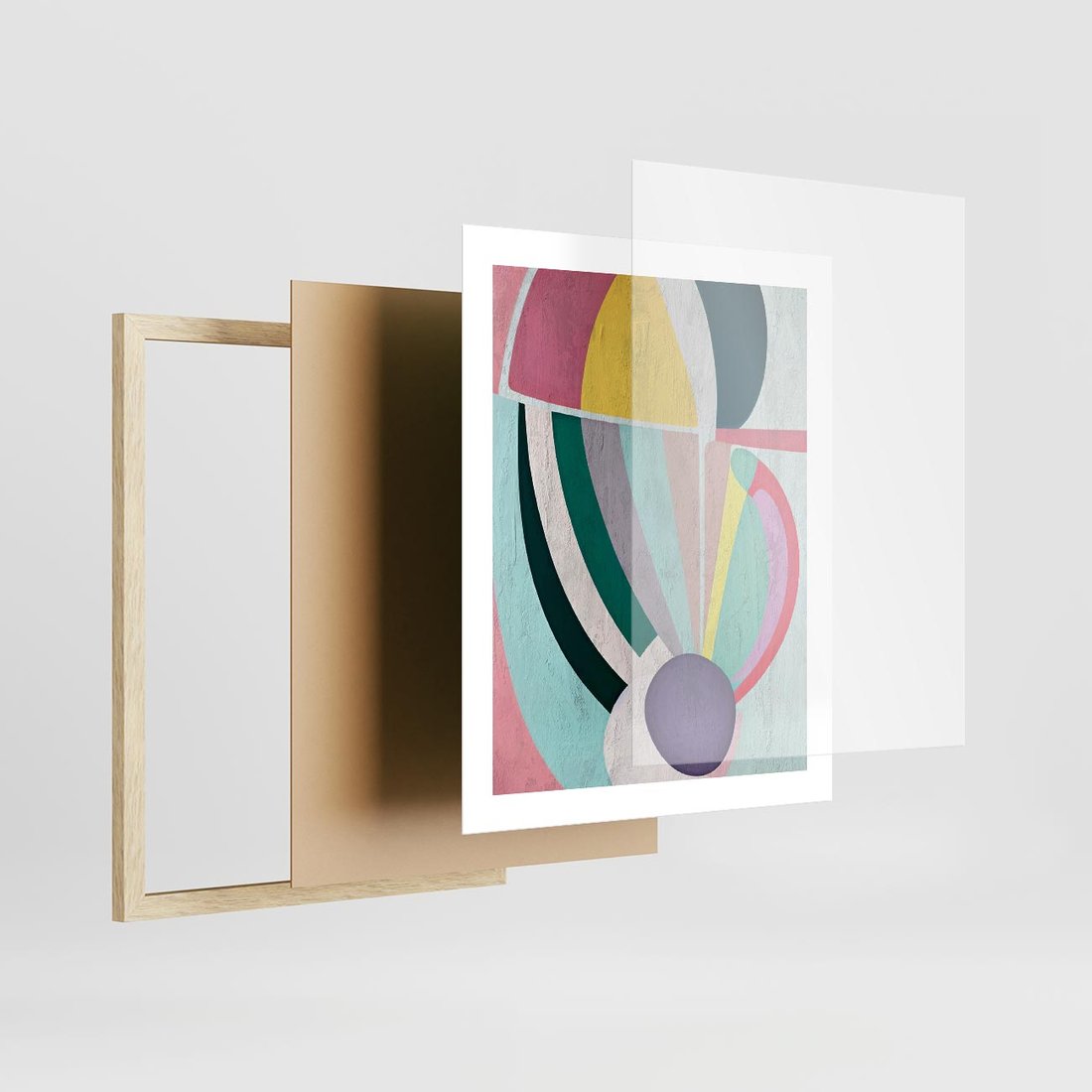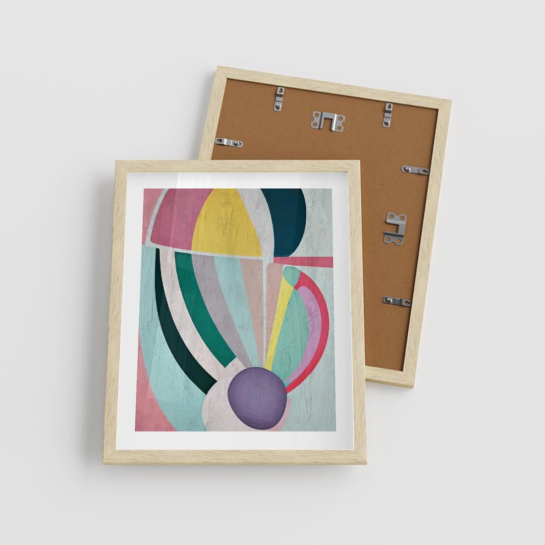 Plakat w ramie 40x50 - Podróżne Echa Przestrzeni - abstrakcyjne dziwne kształty, olejny obraz - rama drewno