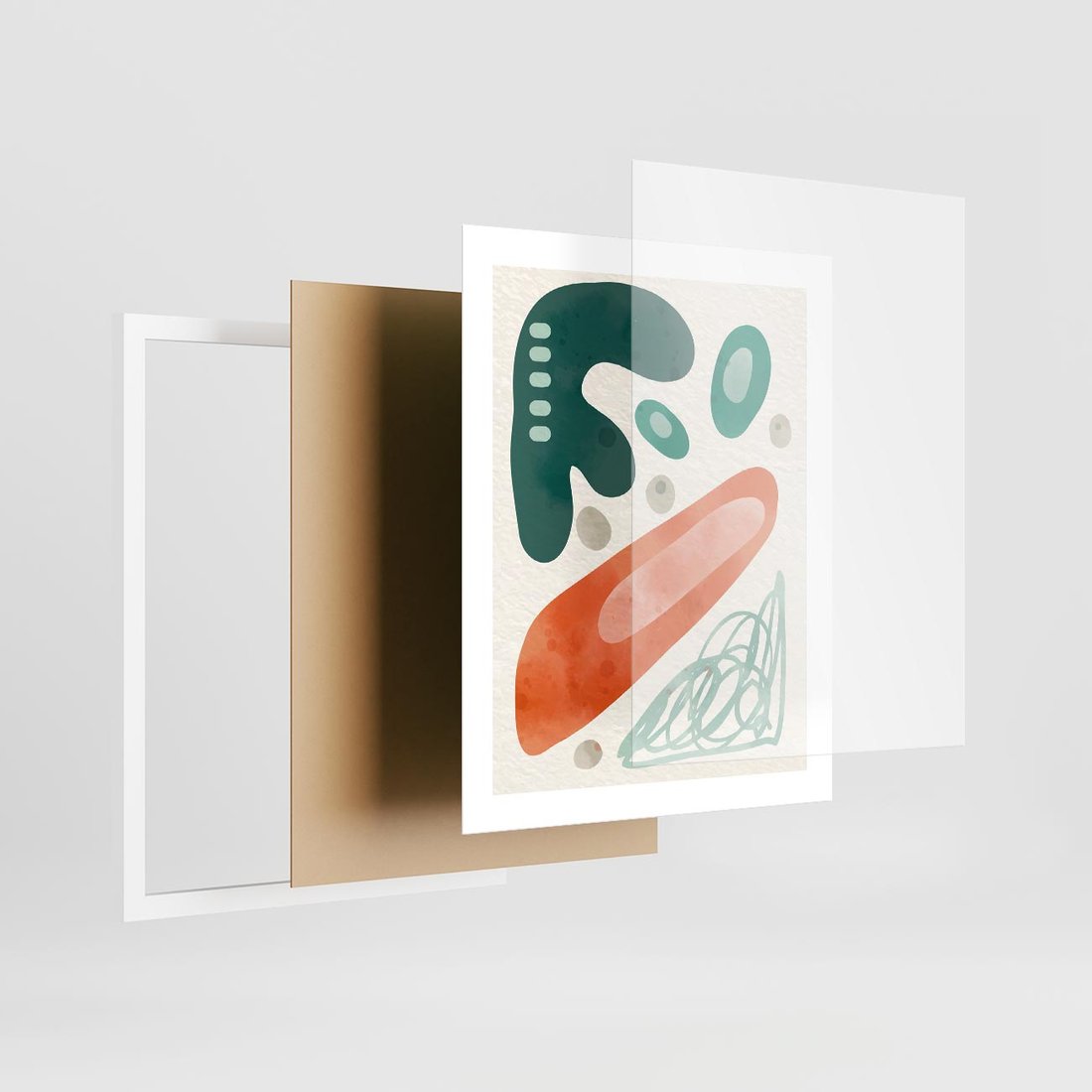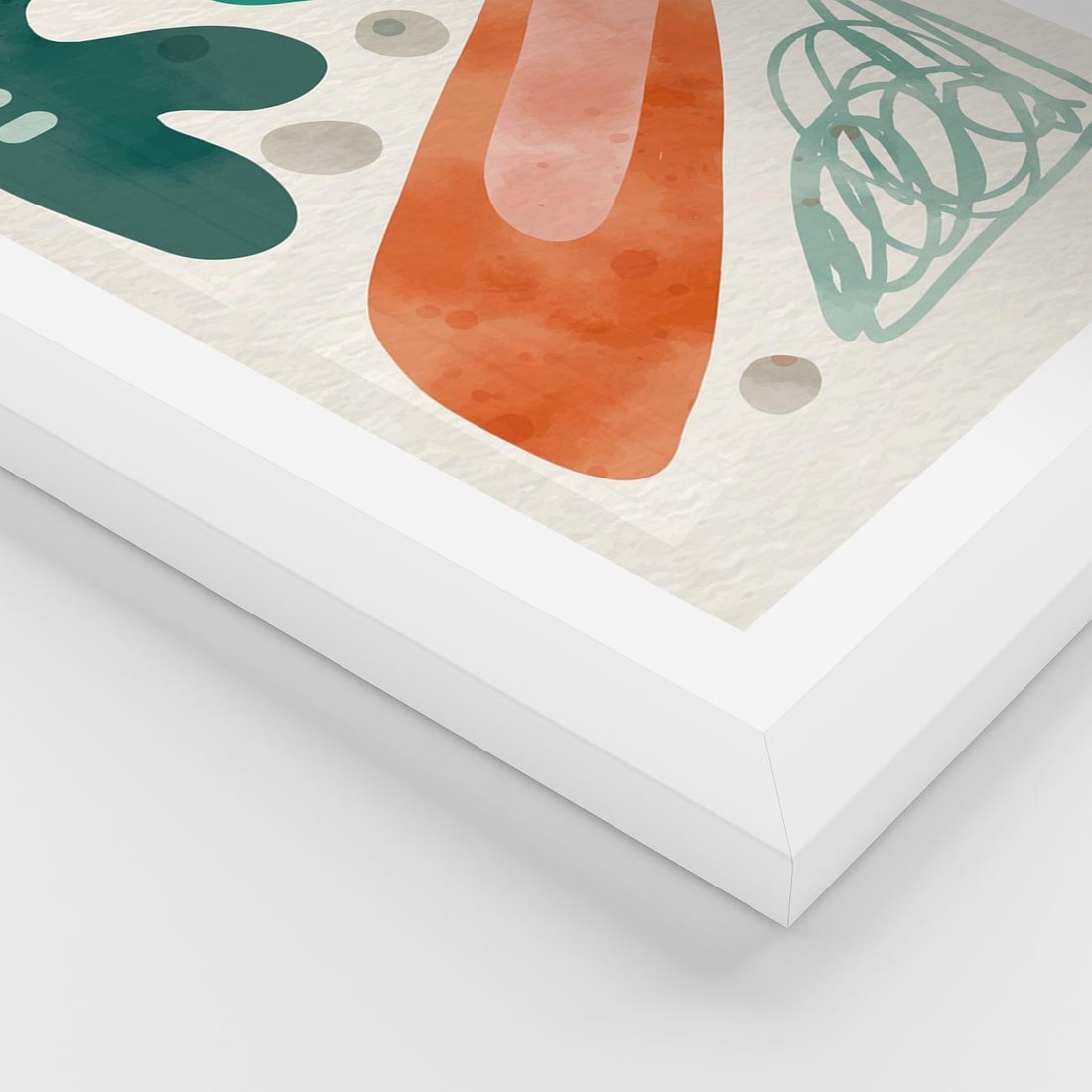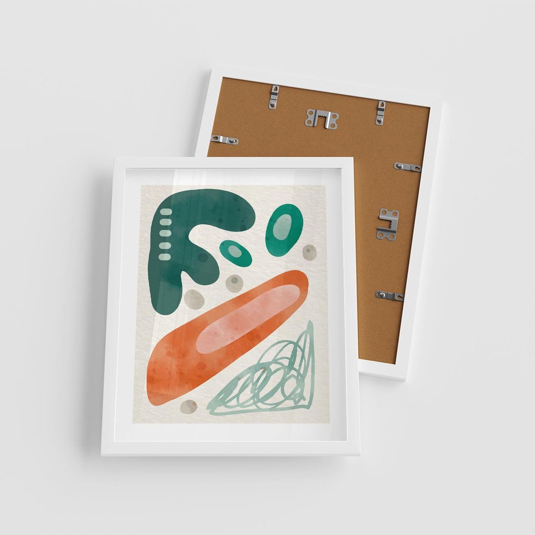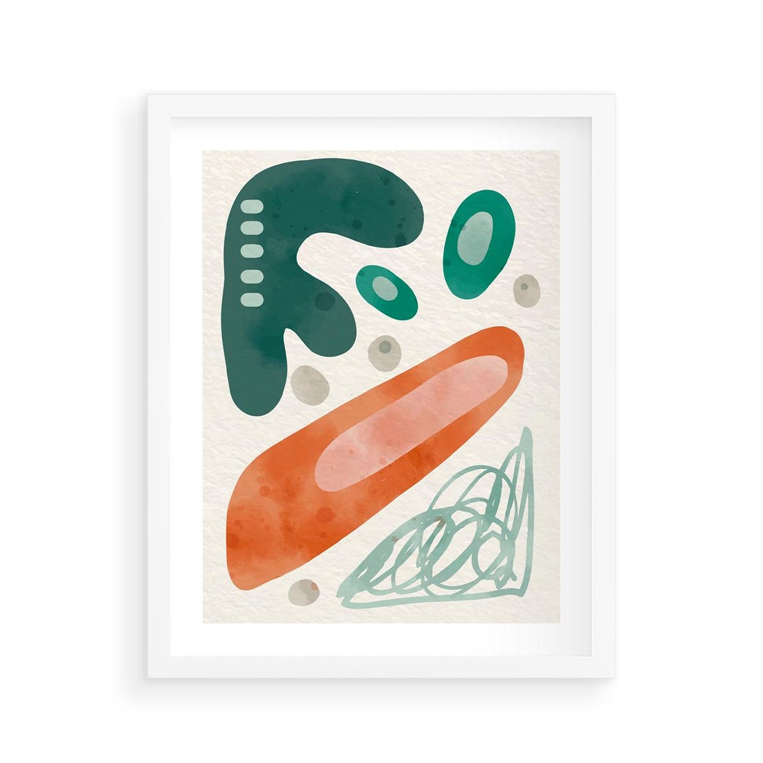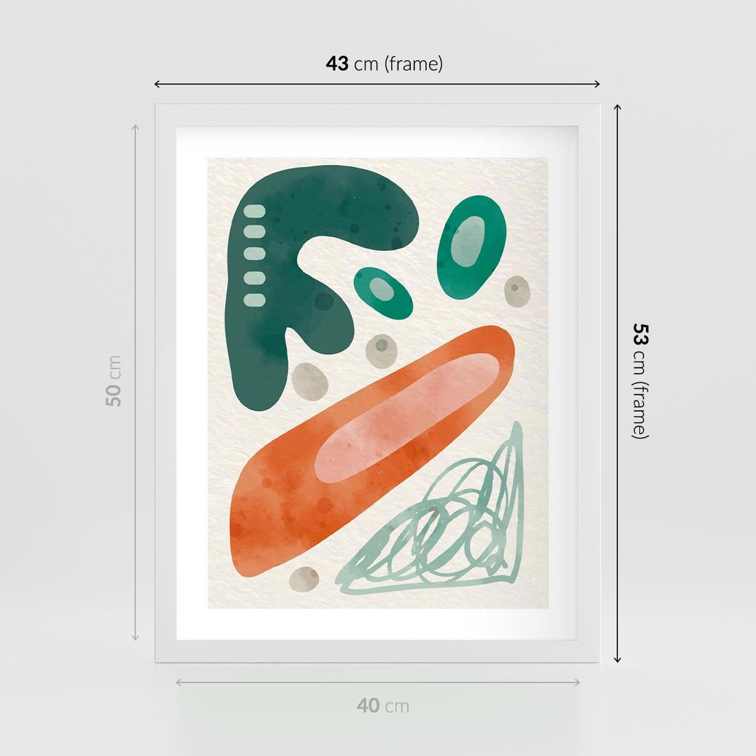 Plakat w ramie 40x50 - Podróżne Wizje - abstrakcyjne plamy, zielony - rama biała