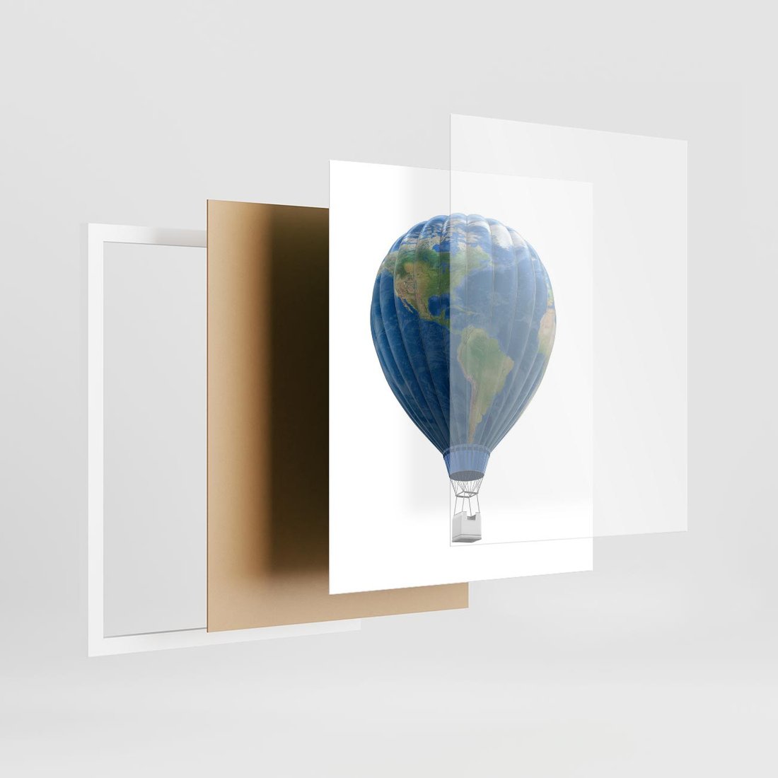 - Plakat w ramie 40x50 - Podróżniczy balon nad ziemią