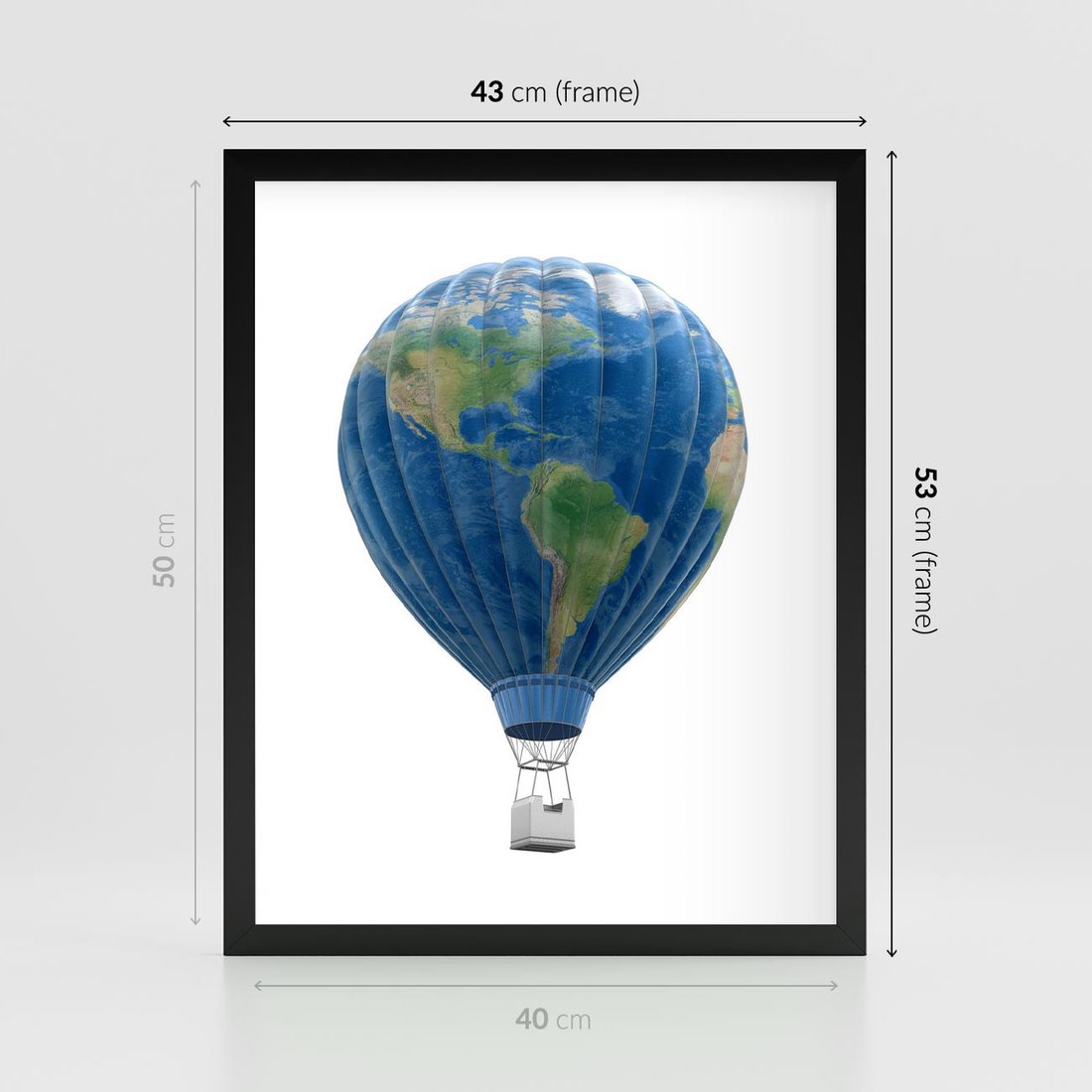 - Plakat w ramie 40x50 - Podróżniczy balon nad ziemią