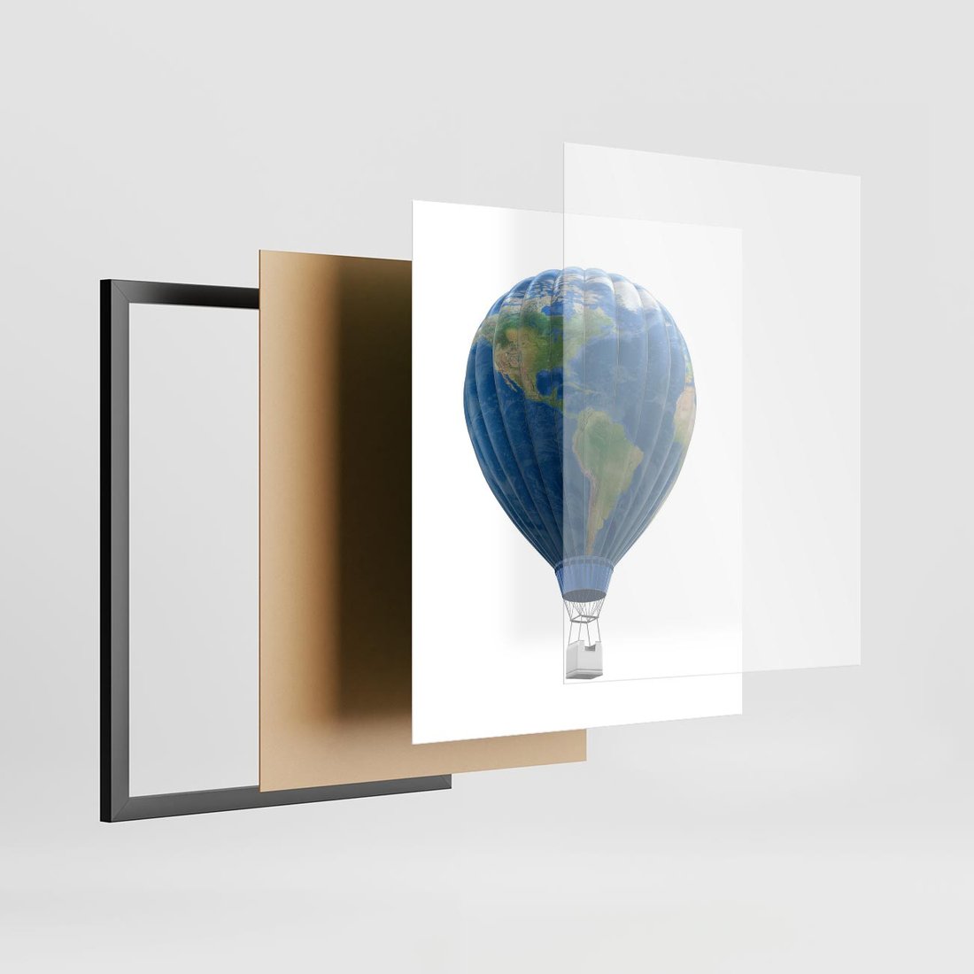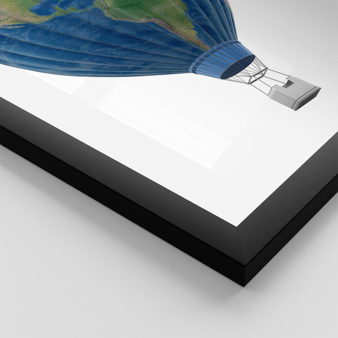 Plakat w ramie 40x50 - Podróżniczy balon nad ziemią - balon, ziemia - rama czarna