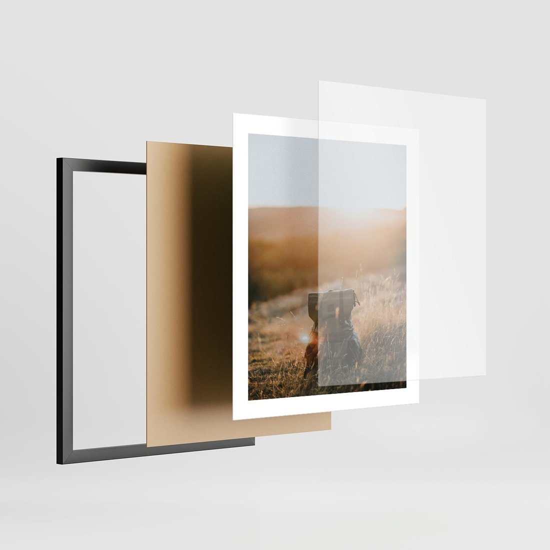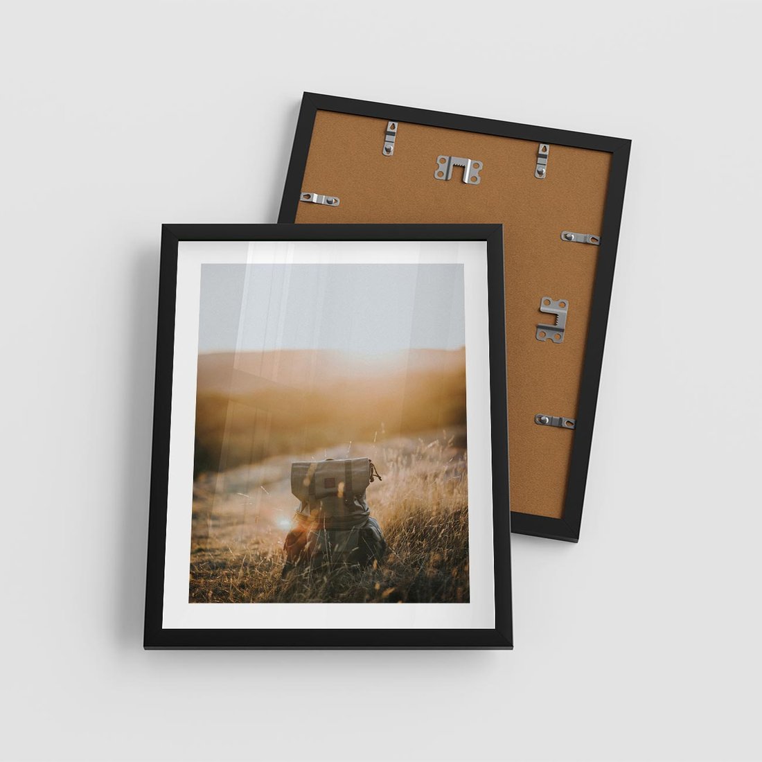 Plakat w ramie 40x50 - Podróżniczy bukiet na łące - plecak, podróż - rama czarna