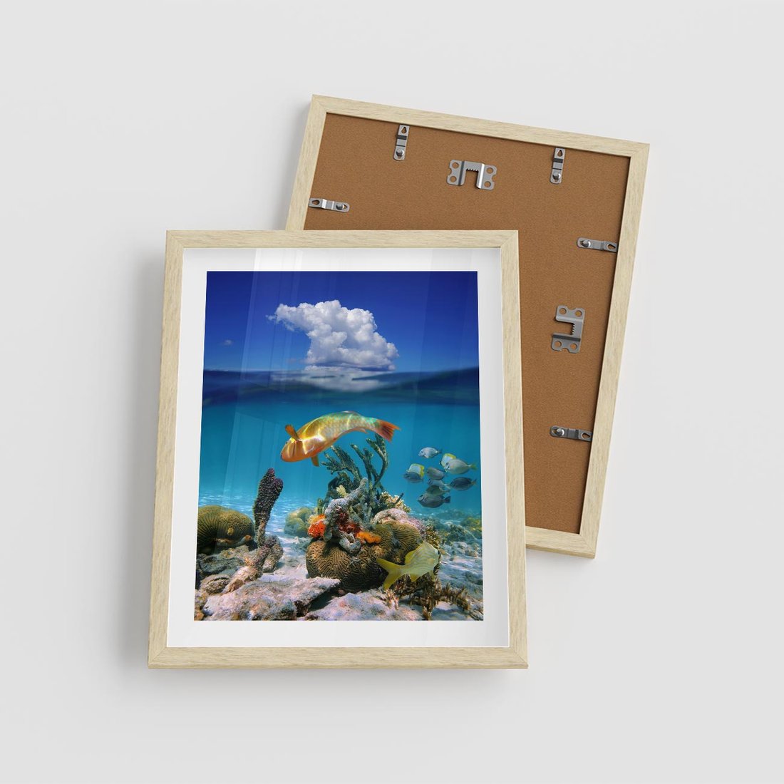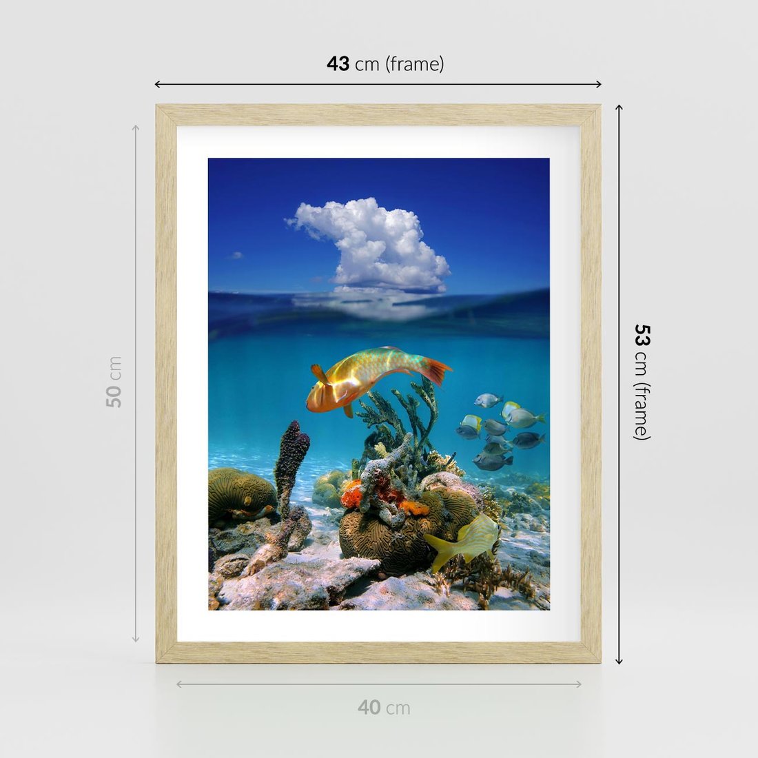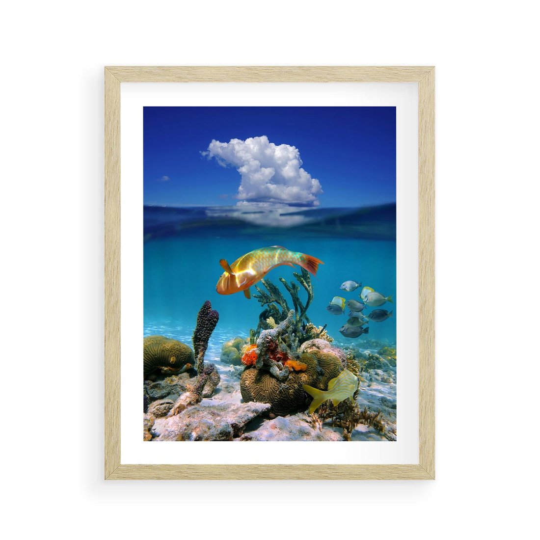 Plakat w ramie 40x50 - Podwodna rafa koralowa: kolorowy oceanowy świat - rafa, koralowa - rama drewno