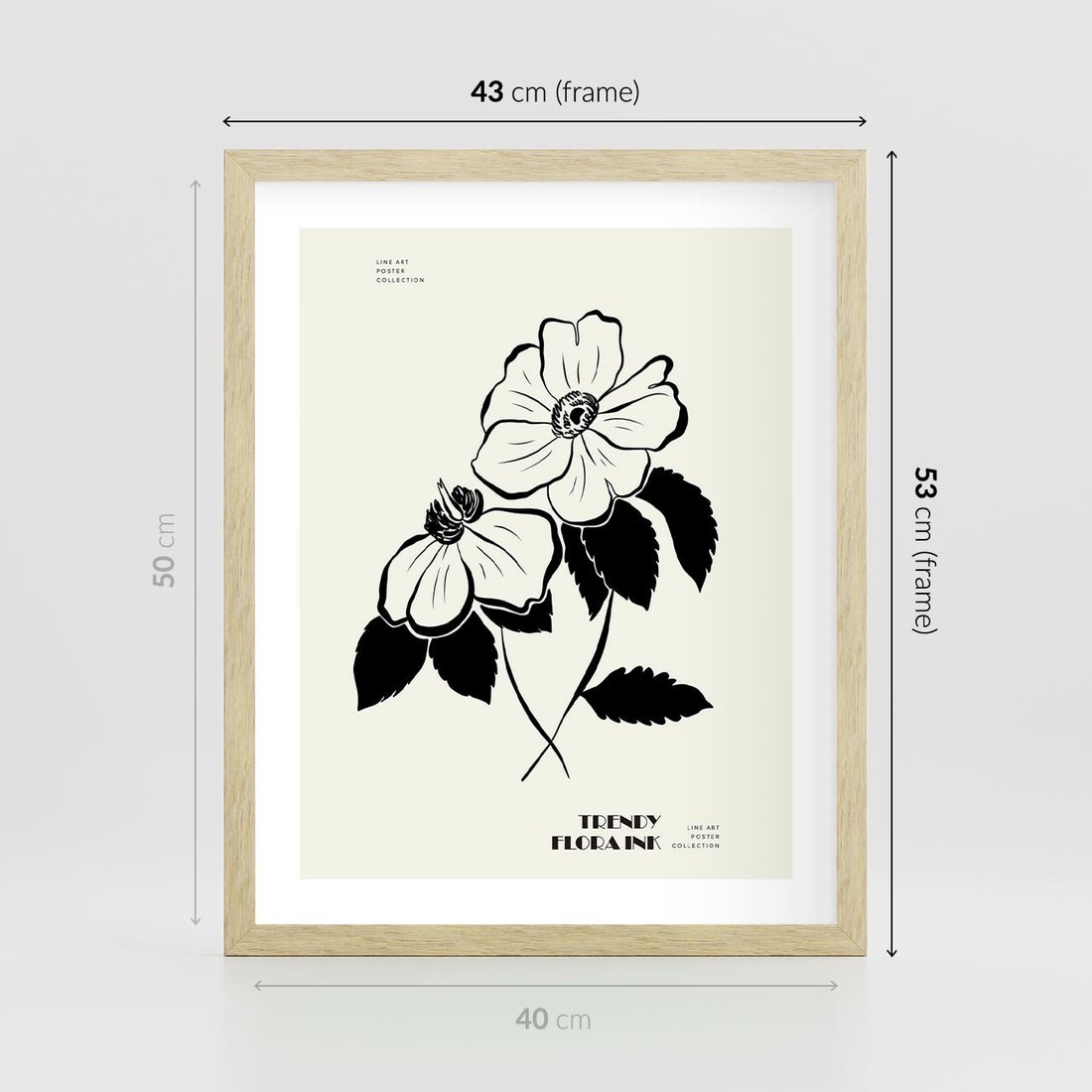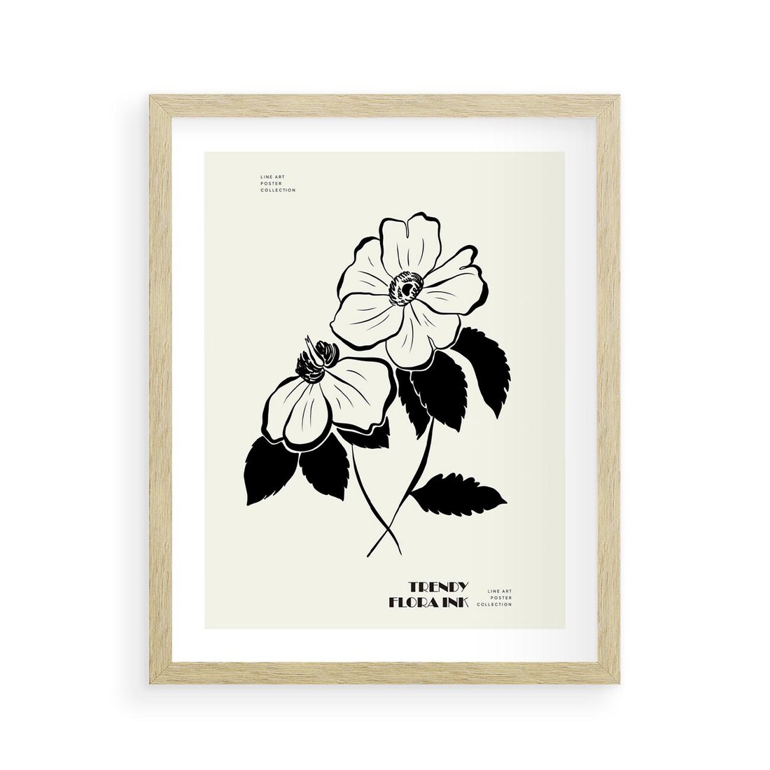 Plakat w ramie 40x50 - Poezja kwiecistej kreski - kwiaty, minimalistyczne - rama drewno