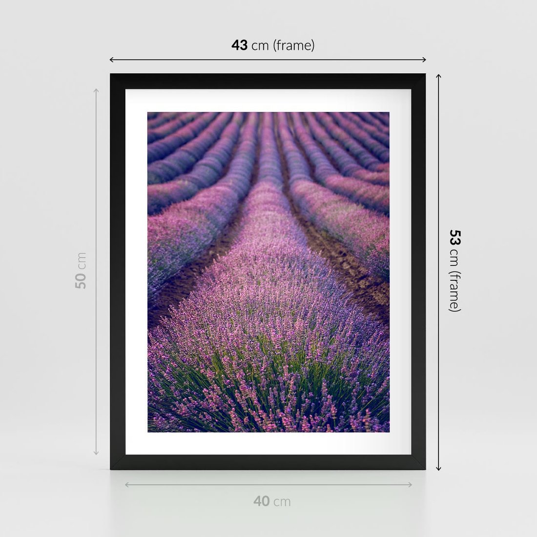 Plakat w ramie 40x50 - Pole Lawendy w Pełnej Krasie - pole lawendy, kompozycja - rama czarna