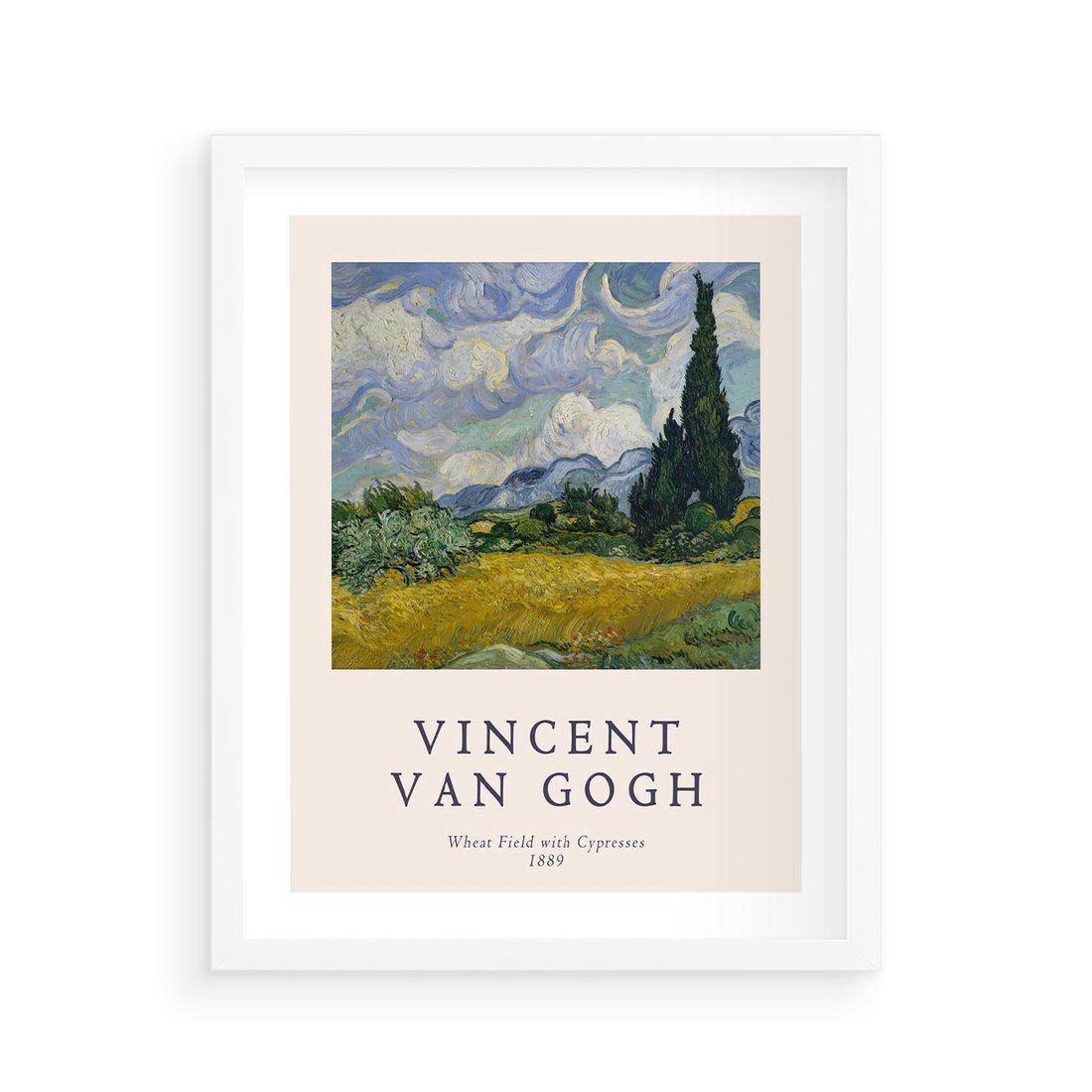 Plakat w ramie 40x50 - Pole z Cyprysami - reprodukcja obrazu, van gogh - rama biała