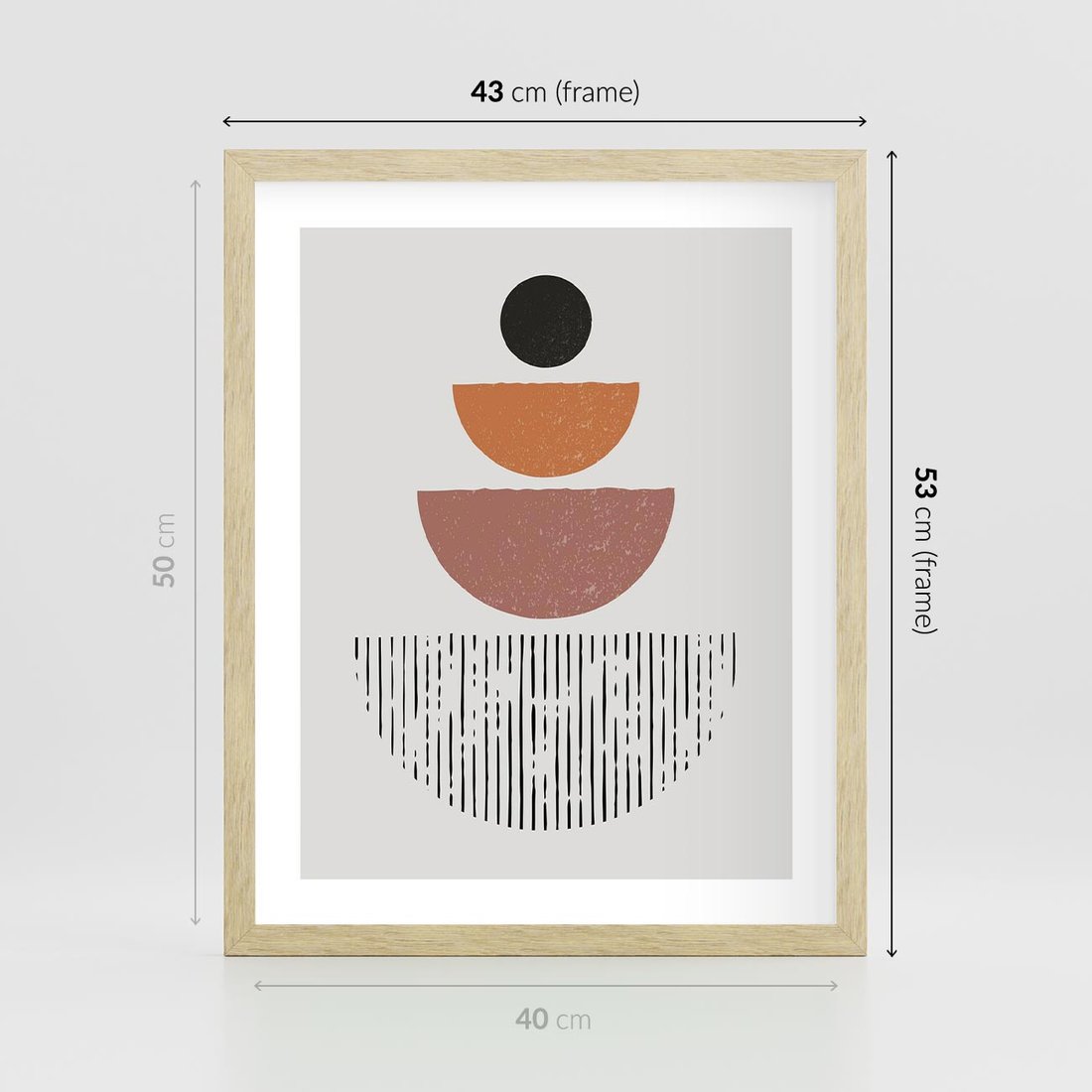 Plakat w ramie 40x50 - Półkola i Boho Akcent - geometria, półkola - rama drewno