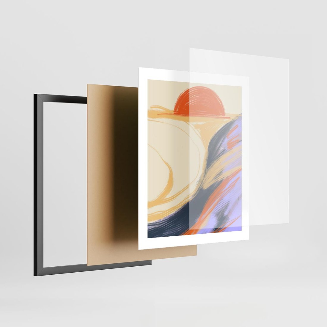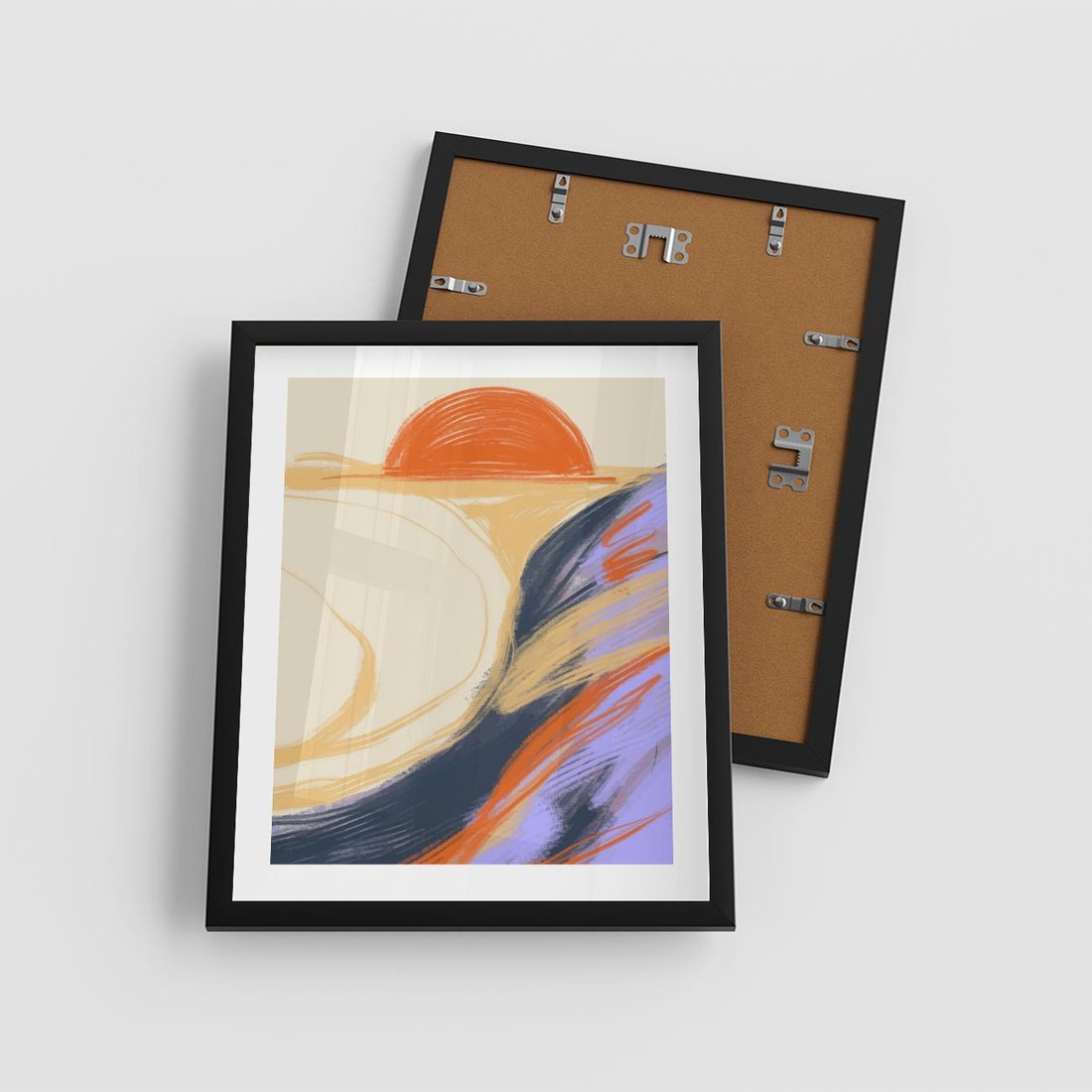 Plakat w ramie 40x50 - Pomarańczowy Horyzont - pastelowy krajobraz, nowoczesny plakat - rama czarna